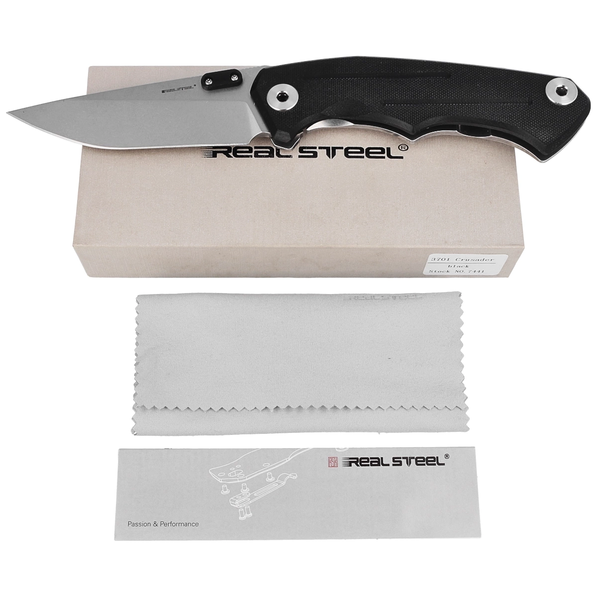 - Crusader Black G10, Stonewashed large EDC folding knife, the result of a collaboration between Polish designer Jakub Wieczorkiewicz (Poltergeist Works) and RealSteel Knives. Handle made of G10, 14C28N stainless steel. A strong tool for everyday use!