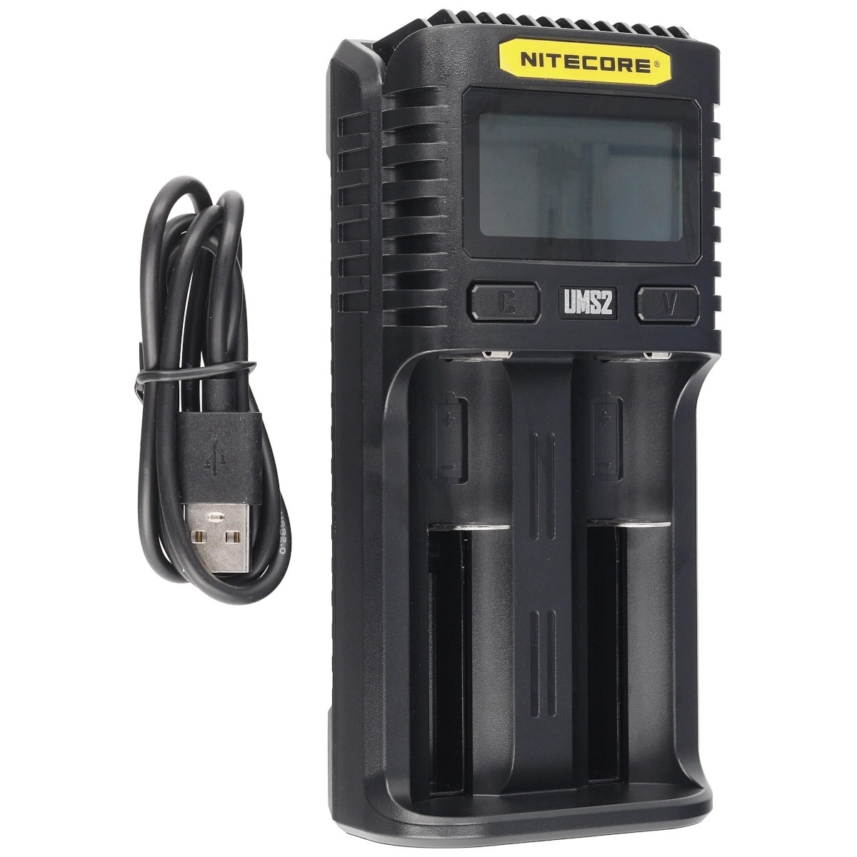 - The Nitecore UMS2 is a high-tech USB charger for lithium-ion batteries. Offering compatibility with a wider range of batteries, this convenient charger can be used with large-size batteries, including 20700 and 21700 cells.