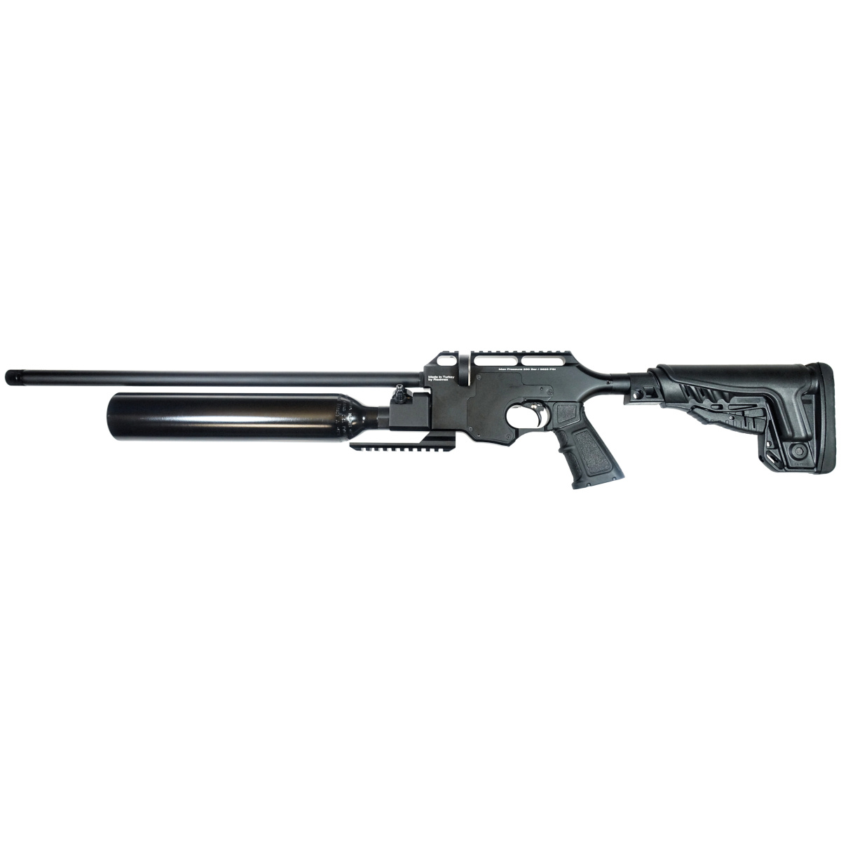 • Reximex Force2, a state-of-the-art PCP air rifle in a practical tactical stock with pistol grip, telescopic flask, and movable foot and cheekbone. Available in calibers: .177 (4.5 mm), .22 (5.5 mm), .25 (6.35 mm)
