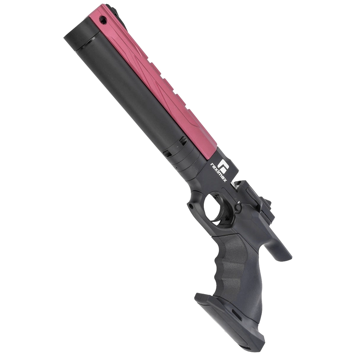 • Reximex RP Red, a sporting PCP pistol with a regulator for repeatable shots. Adjustable pin barrel and trigger tongue. Pressure vessel with a capacity of. 50cc. Anatomical handle with shelf with flask attachment option. Cal. 4.5mm, 5.5mm