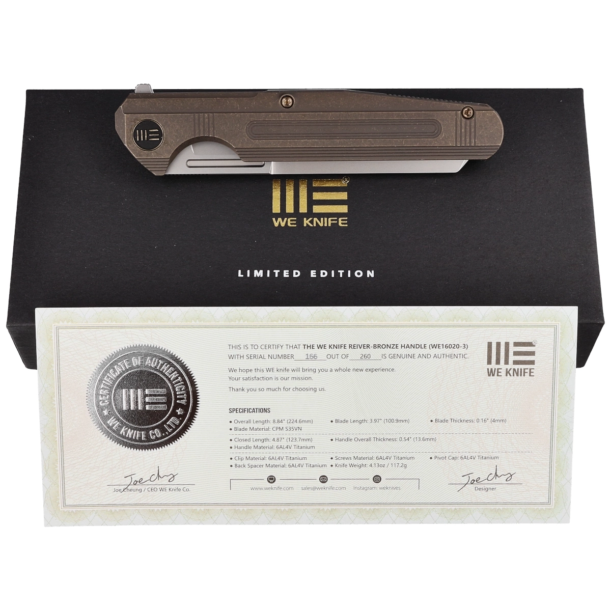 - Reiver Bronze Titanium, Silver Bead LE. Limited edition limited to only 260 pieces, one of the most impressive WeKnife with a serial number of ???. It features a modern look, fantastic fit and finish, but it's the size that makes this knife.