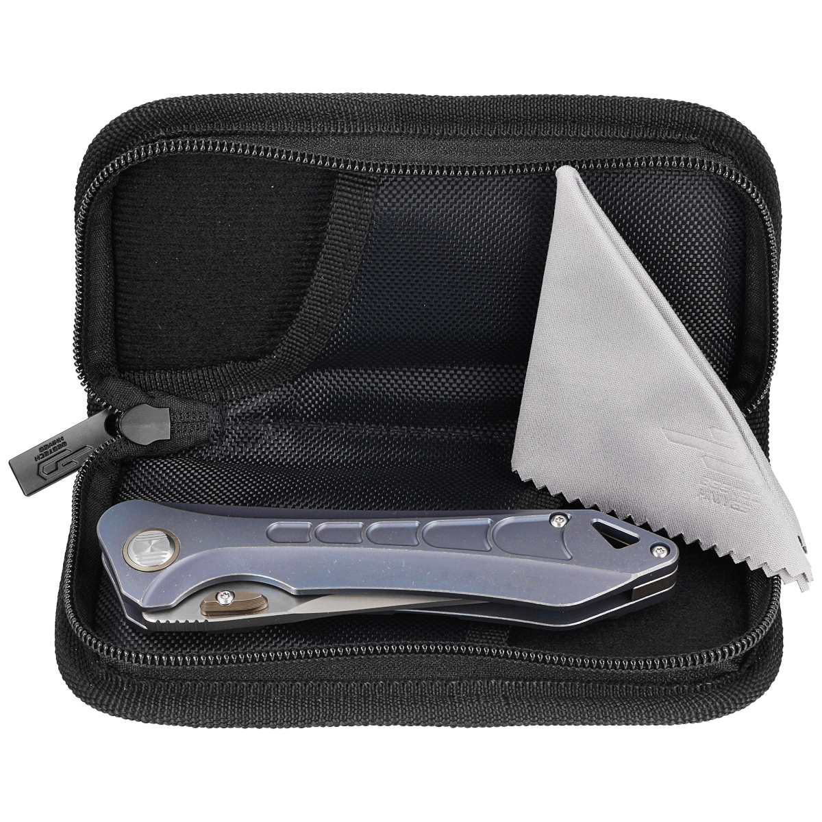 Case - the knife is packed in a zippered nylon soft pouch with the brand's logo for safe carrying and storage of the folder.