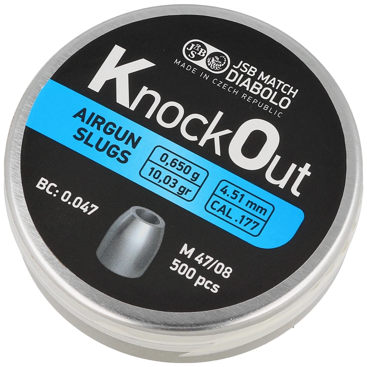 - KnockOut Slug 0.650 g – one of the best Hunter-class pellets in 4.51 mm caliber, designed for high-powered rifles, effective at distances up to 200 m. The hollow point design with a large meplat ensures maximum expansion and effective energy transfer.