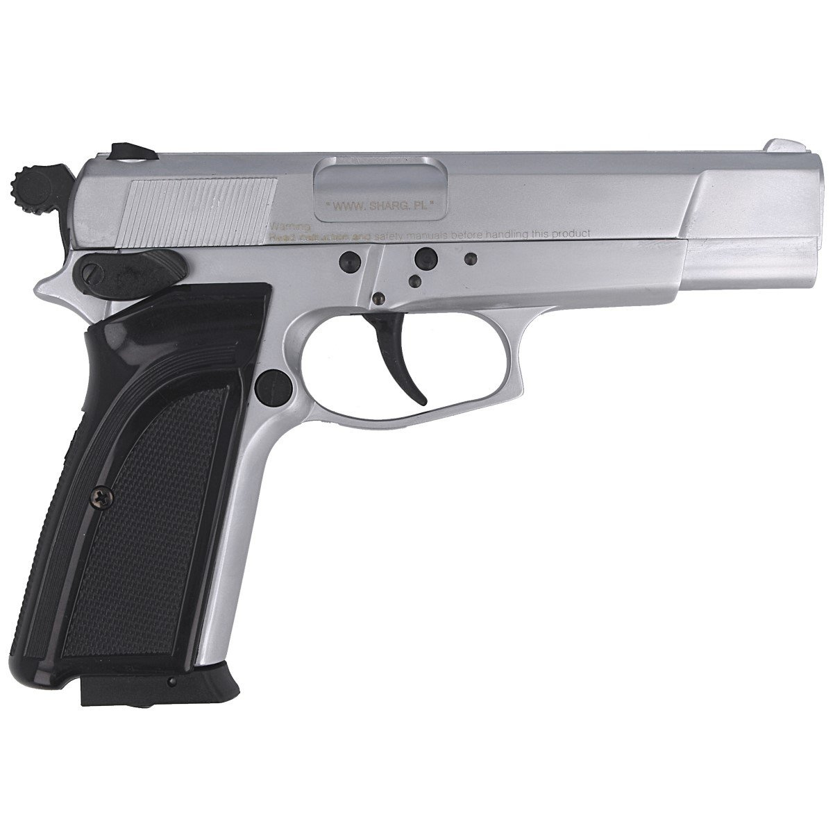 Construction - the fully metal frame provides a realistic weight similar to that of a real firearm. The pistol features a large integrated trigger guard for a comfortable two-handed grip. Textured grip panels made of durable black ABS polymer ensure a secure and stable hold.