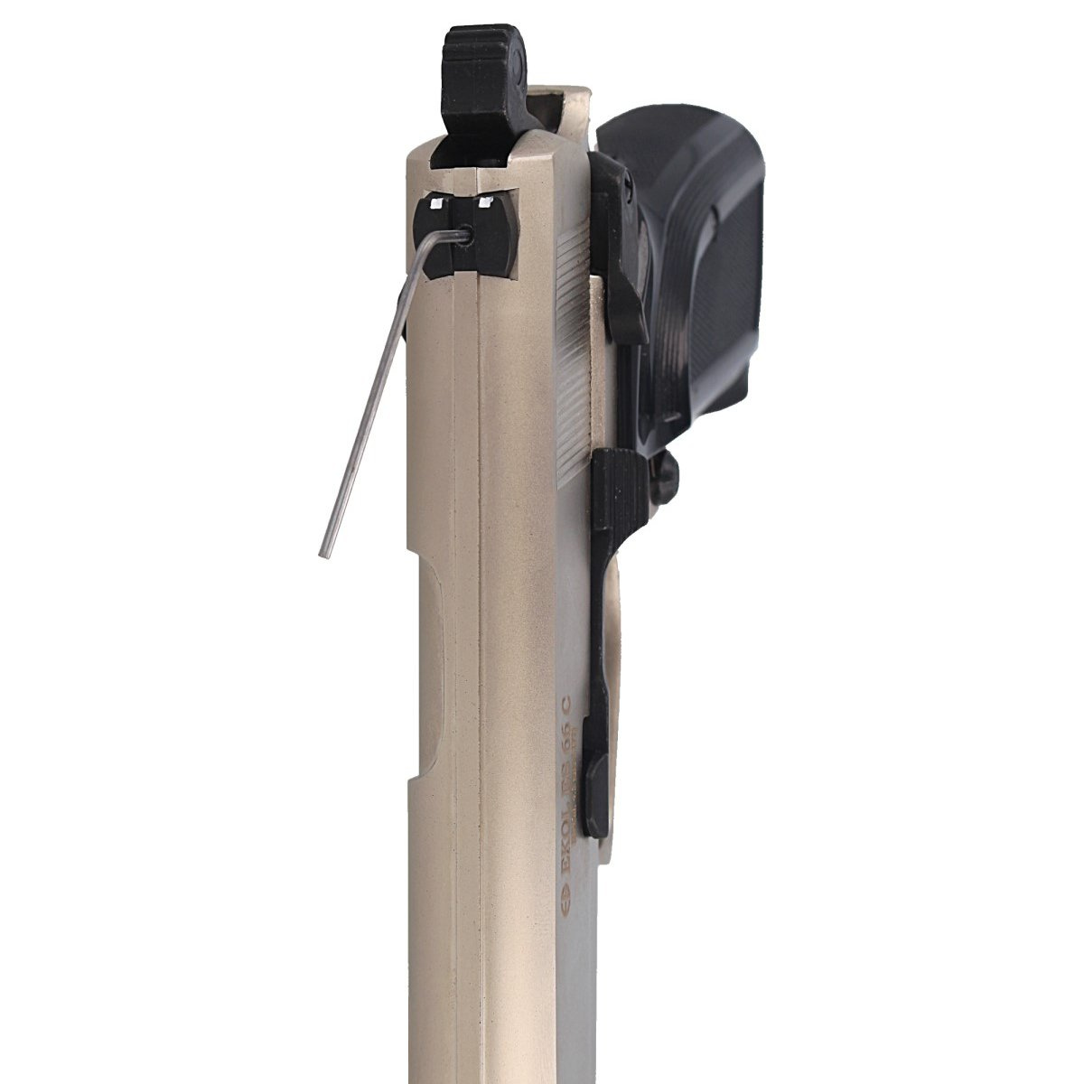 Frame - the fully metal provides a realistic weight comparable to that of a real firearm. The pistol features a large integrated trigger guard for a comfortable two-handed grip. Equipped with fixed metal sights.
