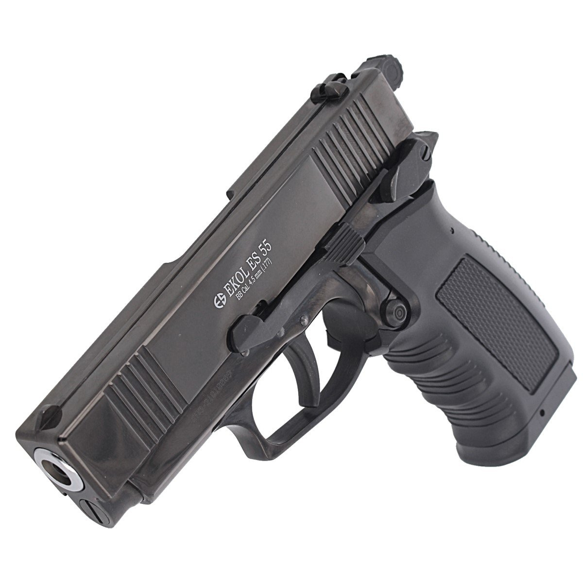 - Ekol ES 55 Black - airgun designed based on blank pistol construction. With such strong heritage, this powerful pistol, reaching a velocity of 140 m/s, is well-suited for dynamic shooting and tactical training.
