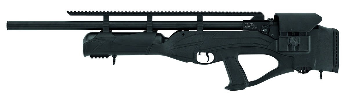 HERCULES BULLY, most powerful PCP companies Hatsan Arms now in bullpup (the structural mechanism of the weapon known to move the magazine and the breech chamber behind the trigger mechanism). Power, range, precision have another dimension, will allow you to rediscover the pleasure of air rifle shooting. Through the use of the buttless system, compact dimensions of the rifle were achieved, while maintaining the normal length of the barrel that guarantees excellent accuracy and the reduced recoil typical of this design.