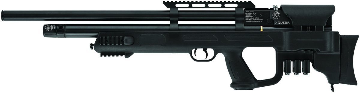 - Gladius powerful Hatsan bullpup PCP air rifle with regulator. 6-stage adjustment of the shotgun's discharge energy according to the need or distance. By using a flaskless system, compact dimensions were achieved while maintaining the normal barrel length