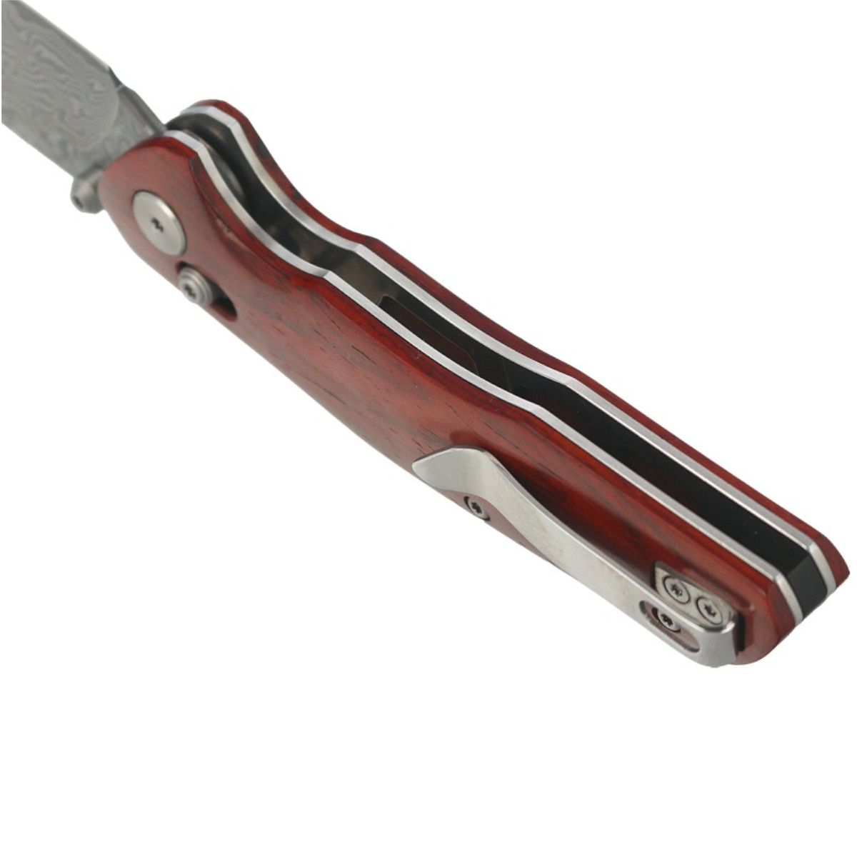 - Ronan Rosewood, Damascus, a versatile EDC knife. Blade drop point damascus blade with unique design, reliable locking mechanism and Rosewood Handle. Excellent value for money! A knife you can always carry with you!