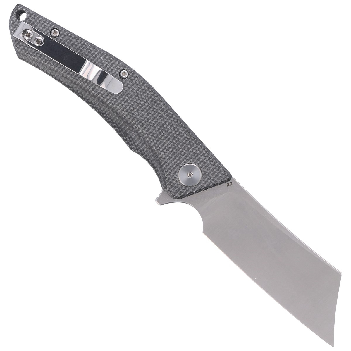 Blade - Cleaver type (cleaver) finished in a striking Two Tone method, satin bevels, the rest of the blade finished with Stonewash. The slightly curved cutting edge converges towards the sharp tip of the knife. The thickness of the blade provides high strength while the high, flat grind gives excellent cutting edge geometry and extreme cutting performance. Ball bearing ceramic supports the opening of the blade with a quick flipper (index-finger flipper) when opened acting as a stag. A section of the blade's back is covered with an upper jimping, notched thumb rest for easy control of the knife. The whole thing is locked with the proven and popular liner lock.