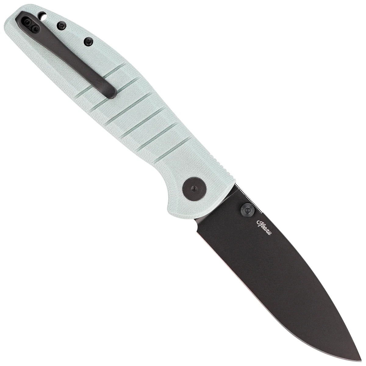 Handle - made of G10, a composite fiberglass material compressed with synthetic resin. The aggressive texture of the grips provides a firm grip, even with wet hands. The cover's chamfered edges eliminate sharp edges for comfort, and the finger indentation made on the front improves ergonomics. The open-backed design fixed with steel spacer sleeves reduces weight and makes cleaning easier. A two-position right/left deep carry clip allows you to carry the knife discreetly in your pocket in tip-up position (blade tip up).