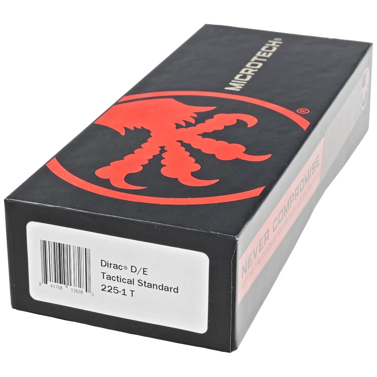 • Dirac D/E Black Aluminium, Tactical is a compact OTF automatic knife from the Dirac series. Operating in D/A mode, it features of a fast blade extension mechanism. Slider button on the side of the handle. Designed by Tony Marfione of Microtech Knives