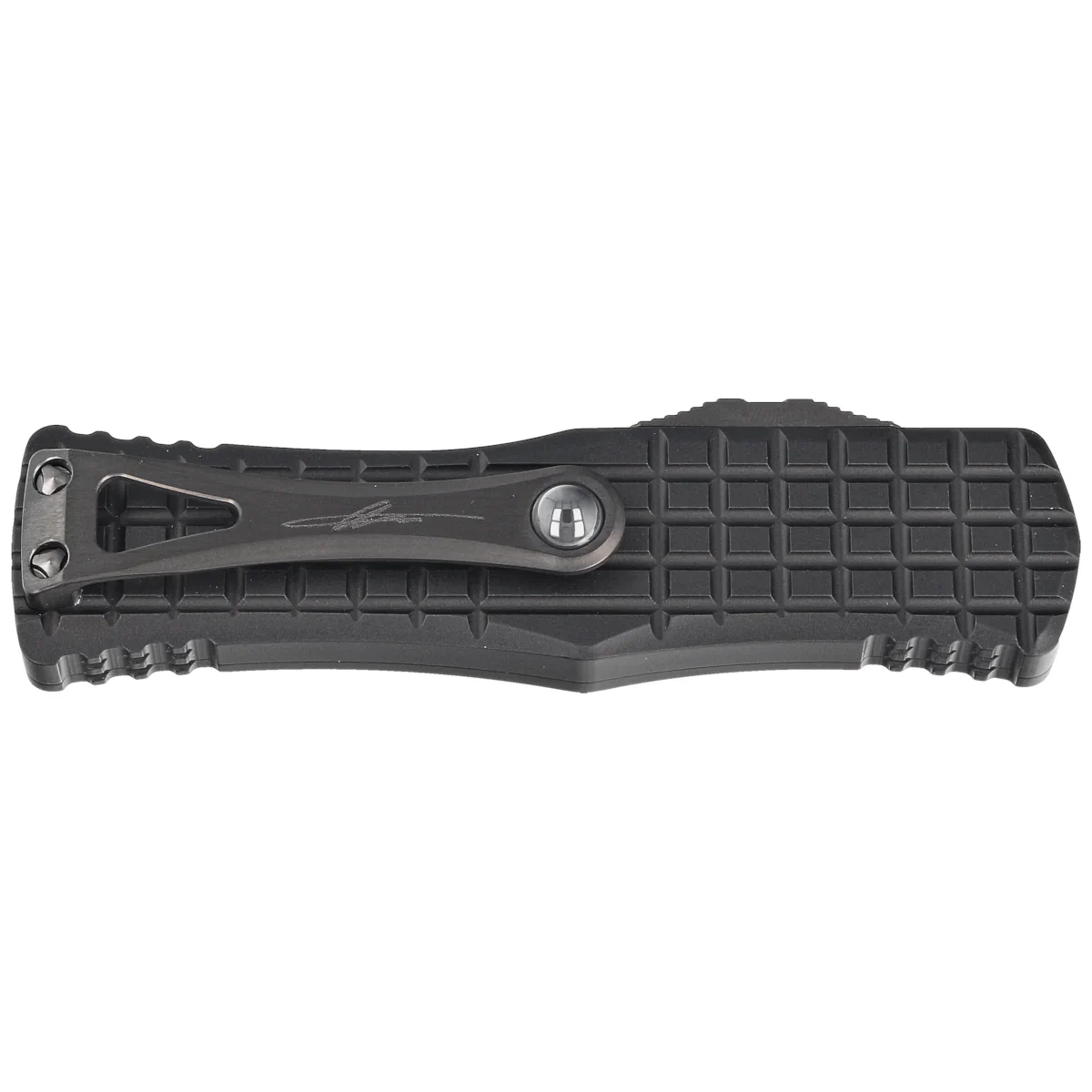 Hera S/E Frag Signature Black Aluminum Shadow, Black DLC one of the best and versatile OTF (Out The Front) automatic knives. Modeled after the iconic Troodon automatic, it is an intermediate link between EDC and tactical models. The over-the-top automatic operates in D/A (Double Action) mode using an opening mechanism that works with great force and power. This model features an excellent fit and superb finish. Designed by Anthony Marfione knifemaker and owner of Microtech Knives.