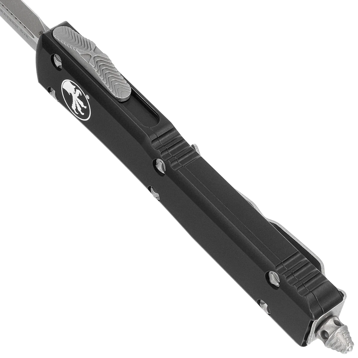 Ultratech D/E Black Aluminum, Apocalyptic is a full-size OTF (Out The Front) automatic knife from the Ultratech series. Equipped with a hell of a fast mechanism that extends a razor-sharp blade. 100% made and assembled in the USA. Designed by Anthony Marfione, knifemaker and owner of Microtech Knives.