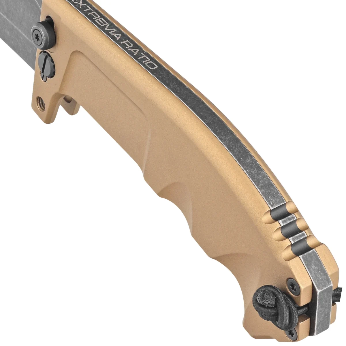 RAO II Expeditions Desert Aluminum, Dark Stone demand from professionals prompted Extrema Ratio to design a versatile survival tool that works well in all conditions. RAO II Expeditions is the result of a modification of the RAO II knife, which was developed for the paratroop reconnaissance regiment "185° Rgt. Ricognizione e Acquisizione Obiettivi" (185° RAO).