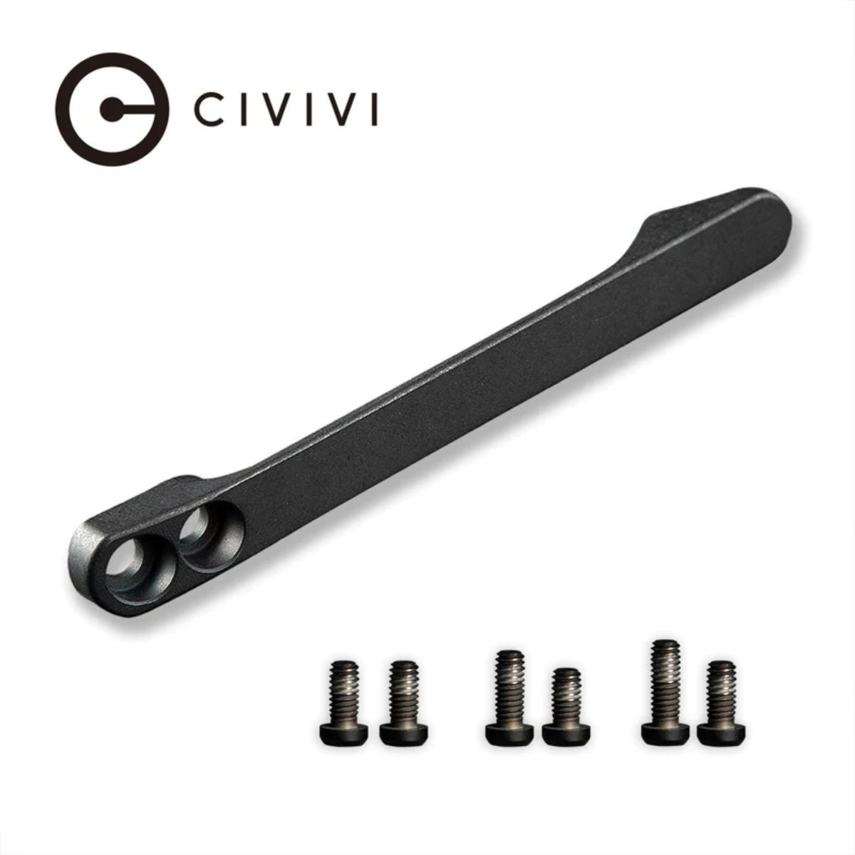 - Clip made of black titanium for WE, Civivi, Sencut knives and for all models with the appropriate mounting hole spacing. 3 different sets of screws allow the clip to be attached to many knife models.