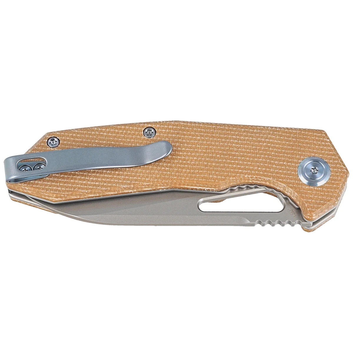 Product name: Vagrant Tan Micarta, Sandblasted M390