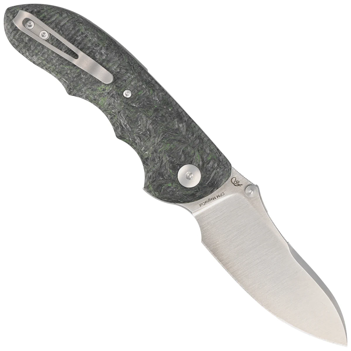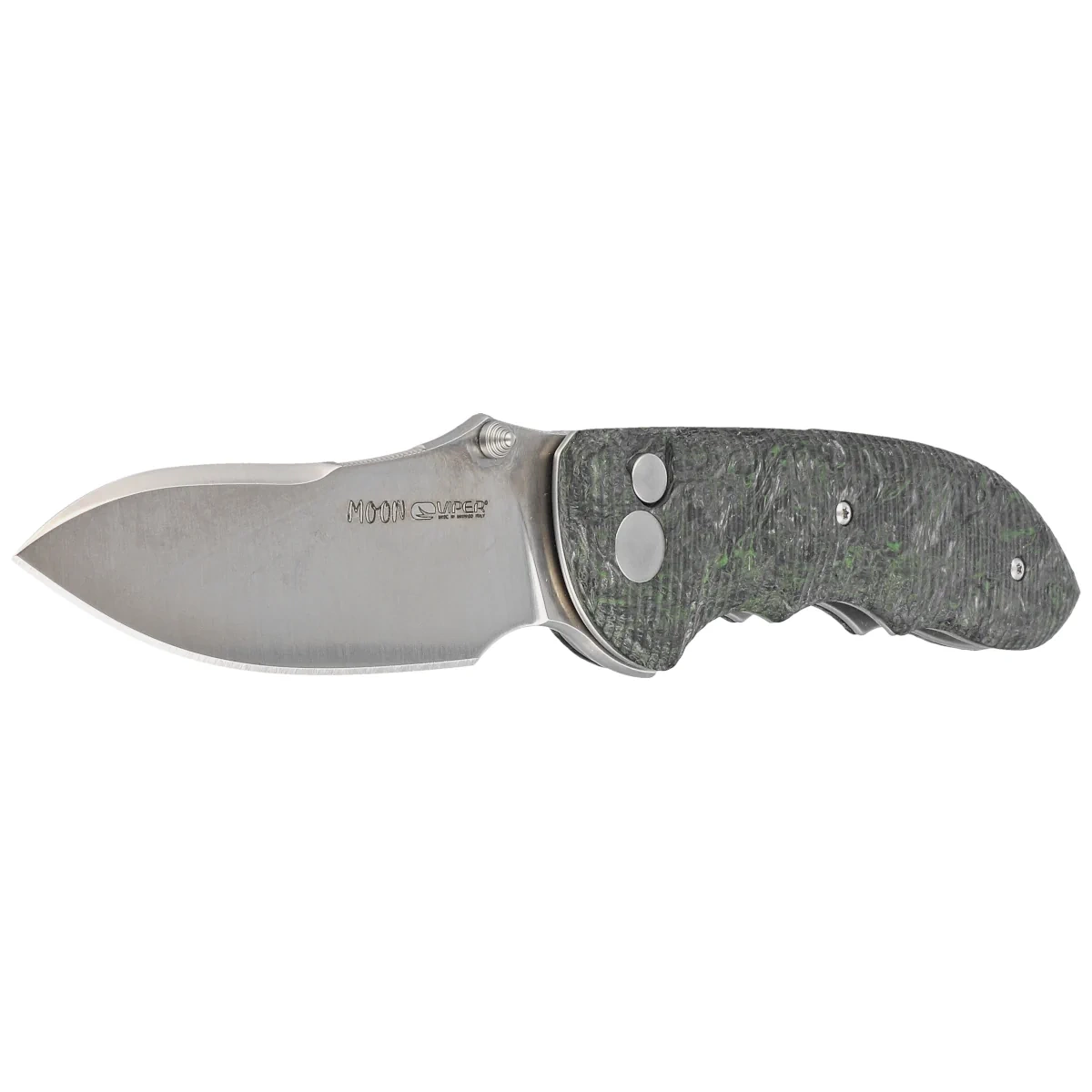 - Moon Dark Matter Green Fat Carbon Fiber, Satin, folding knife designed by Fabrizio Silvestrelli. Intuitive button lock and ergonomic handle. A strong tool made of top materials, including the considered best steel for knives - MagnaCut!