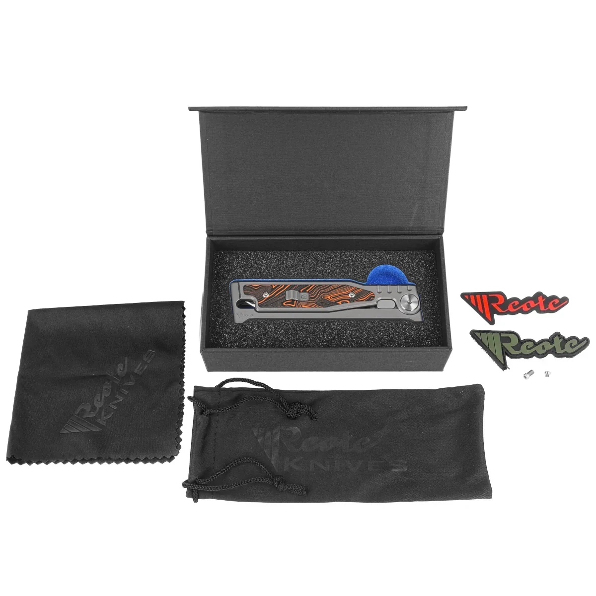 Reate EXO-M Gravity Drop Point Knife Bead Blasted Titanium/Damascus Orange-Black G10, Satin Elmax