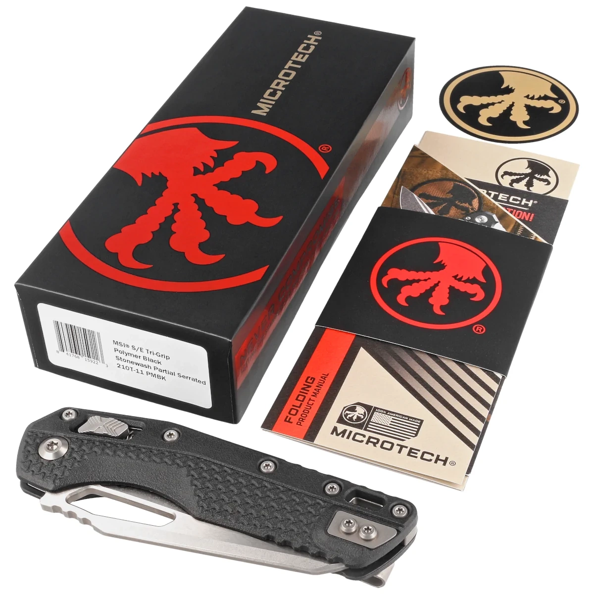 Microtech MSI S/E Ram-Lok Black Tri-Grip Polymer, Stonewashed P/S M390MK by Tony Marfione (210T-11PMBK)