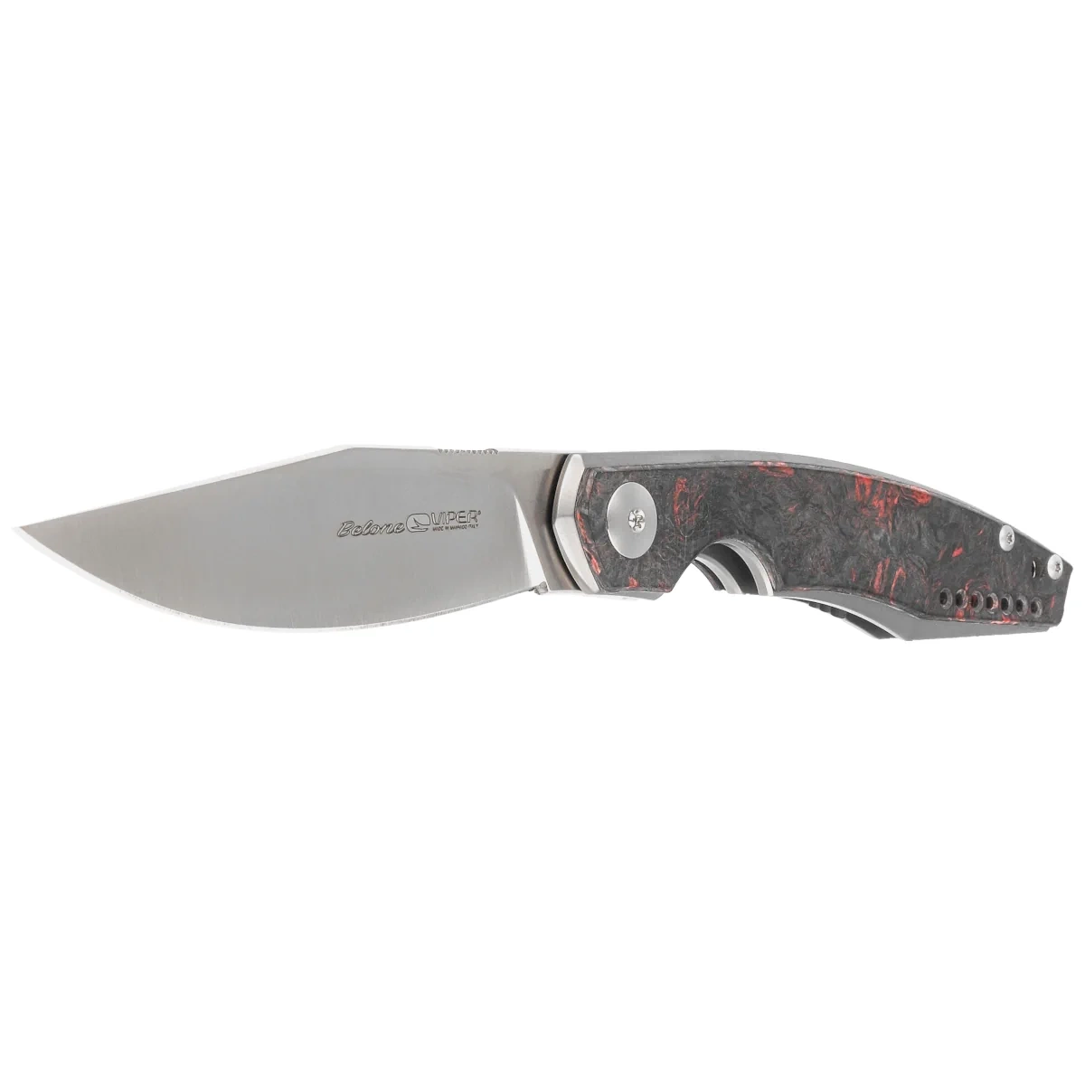 • Belone Titanium/Dark Matter Red Fat Carbon Fiber, Satin shape derived from traditional Italian knives. Designed according to the minimalist style of Danish knifemaker Jesper Voxnaes. A lightweight knife adorned with sophisticated details!