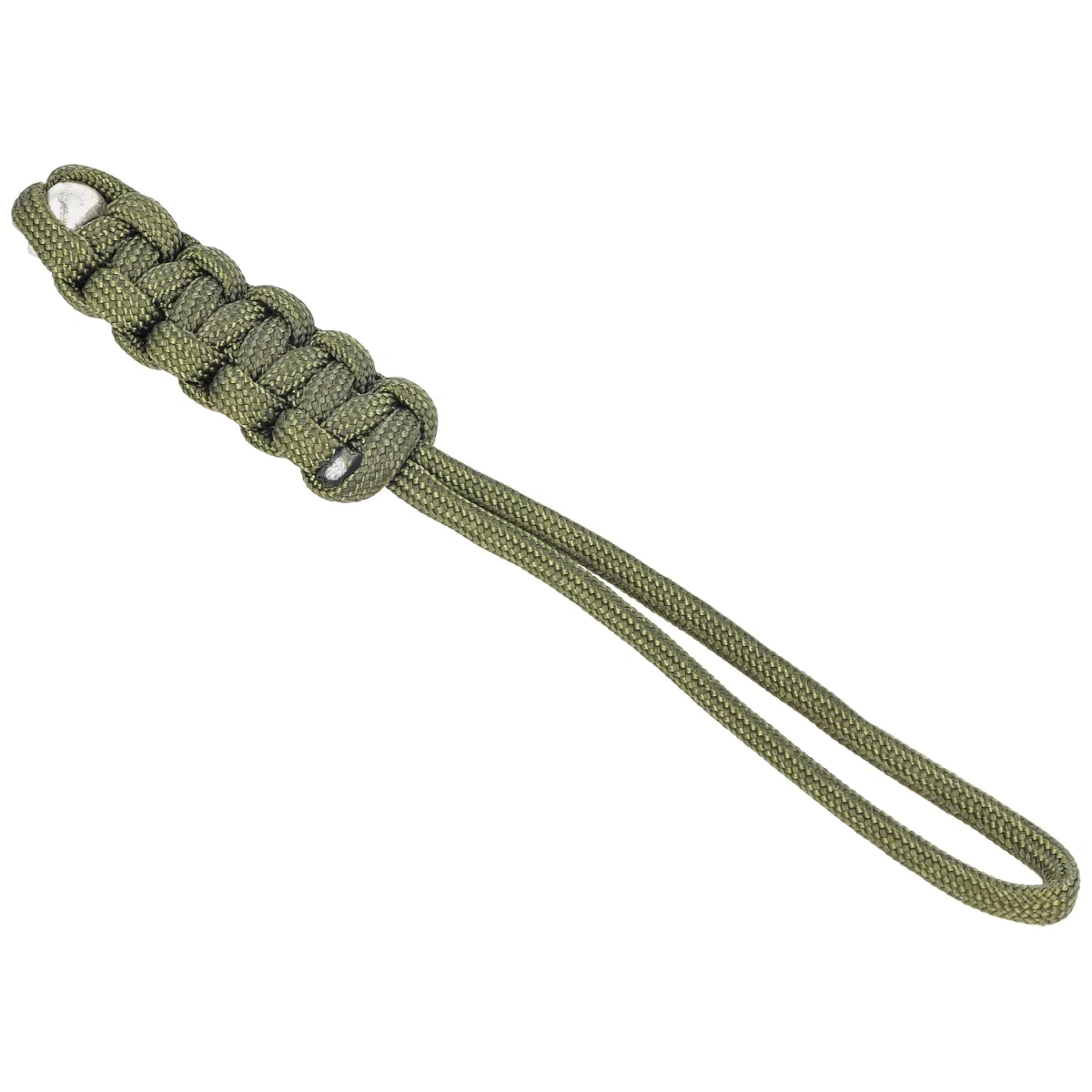 - Skull Paracord Lanyard Army Green, a tag for knife, flashlight, keychain, made of paracord, ending with a metal skull. In addition to the aesthetic value of the decorative weave, it extends the handle of the knife, making it easier to pull it out of the p