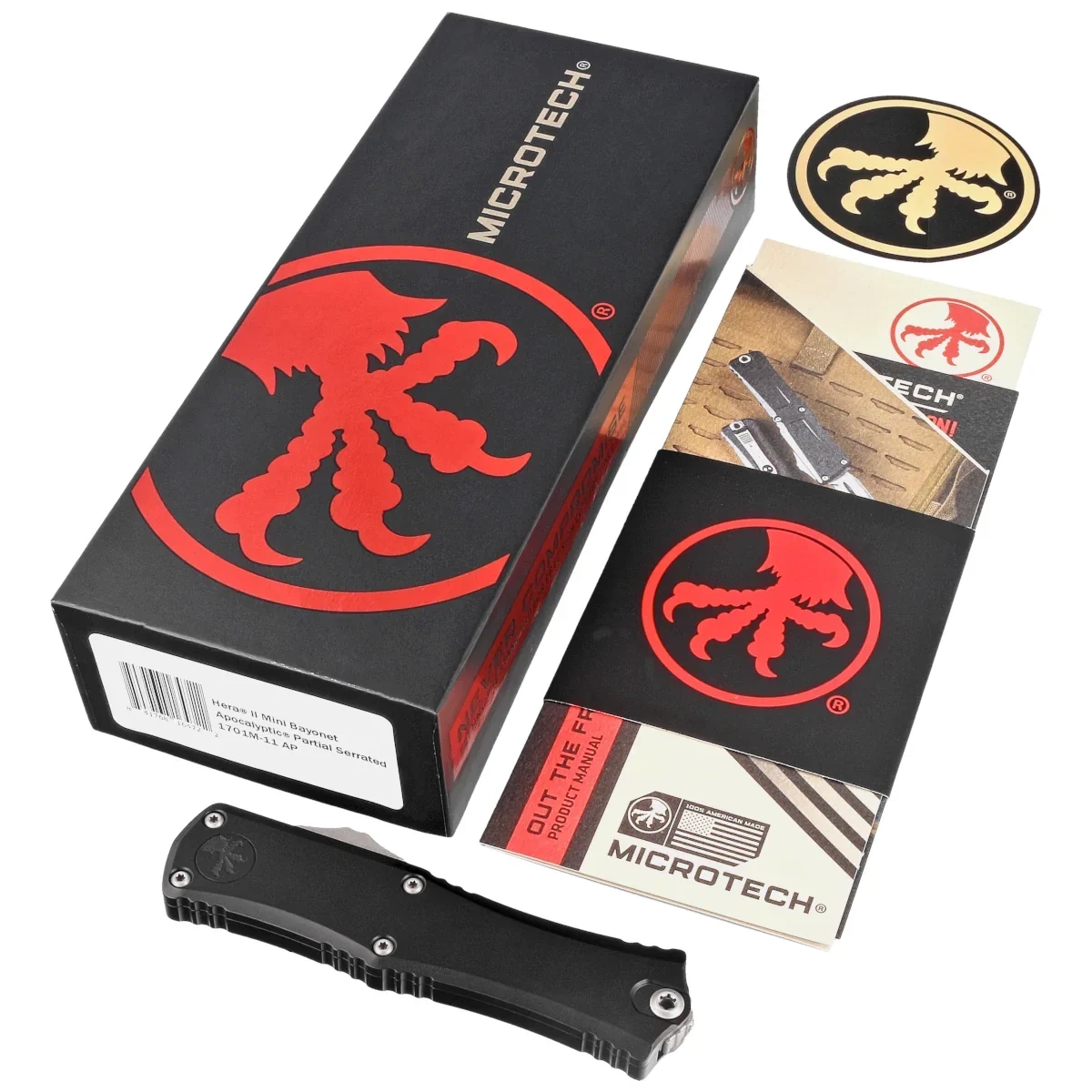 - Hera 2 Mini Bayonet Black Aluminum, Apocalyptic P/S compact version of one of OTF's best automatic knives. Convenient to carry, while retaining the power of larger models. Designed by Anthony Marfione knifemaker and owner of Microtech Knives.