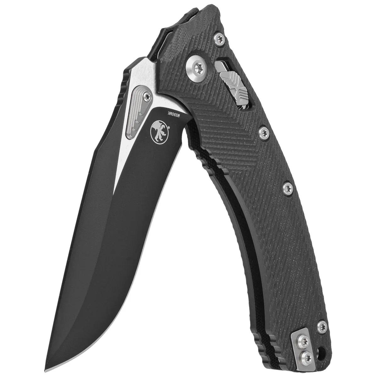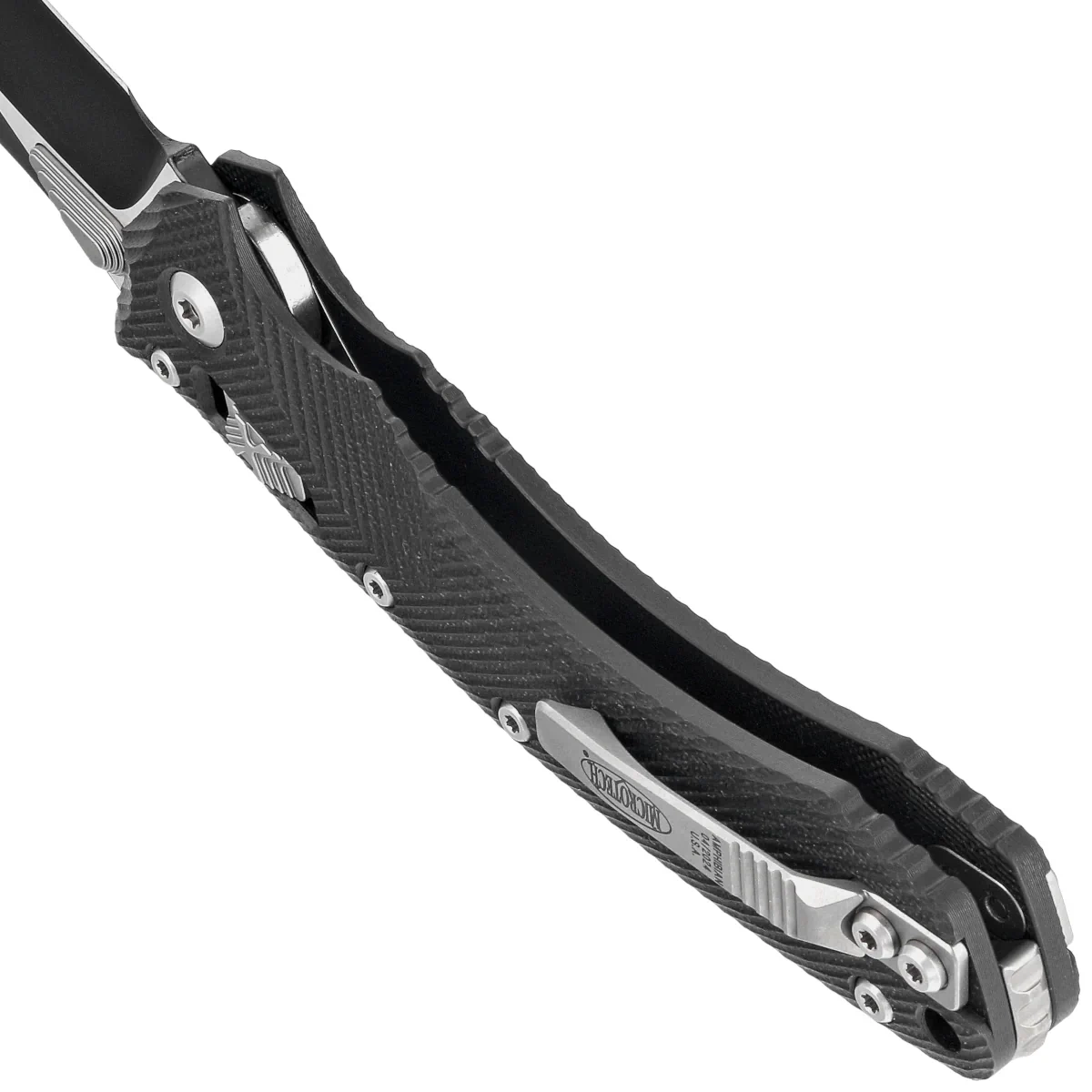 Handle - made of durable G10 composite, covered with milled lines (Fluted) for better grip. Wide locking slide with Microtech's characteristic stepped X structure. Both grips have been screwed together with a solid backspacer. A double-sided (right / left) titanium clip allows you to discreetly carry the knife in tip-up position. Above the clip a lanyard hole, a place for a safety or decorative cord.