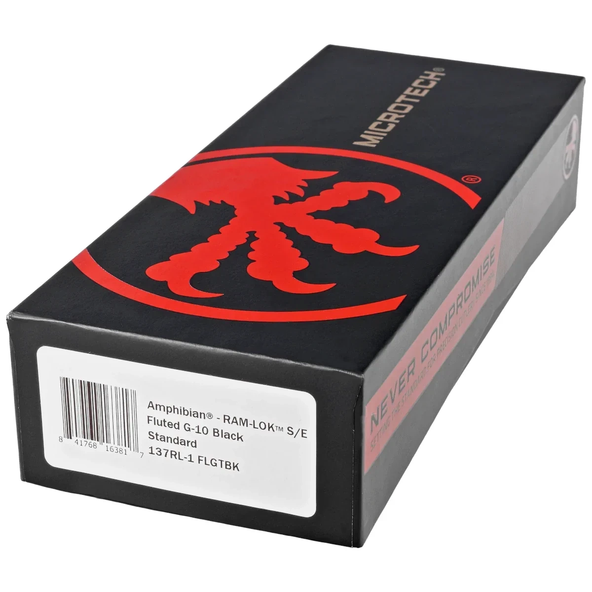 - Amphibian Ram-Lok S/E Fluted Black G10, Black reissue of folding knife with intuitive RAM-Lock. Superior M390MK blade steel, the result of collaboration between Microtech and Bohler engineers. Ergonomic Handle. Designed by Anthony Marfione of Microtech!