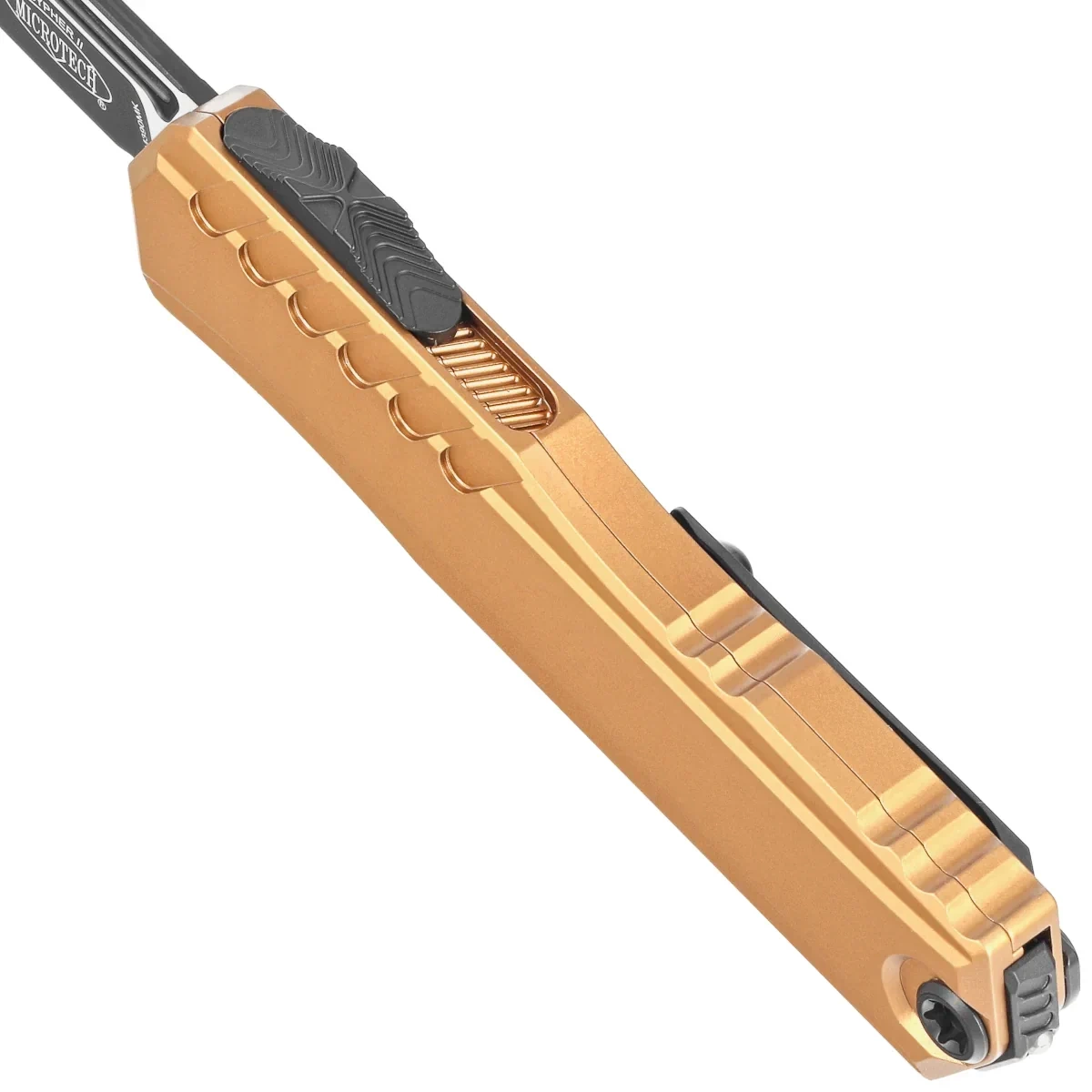 Microtech Cypher II S/E OTF Knife Tan Aluminum, Black M390MK by Deryk Munroe and Tony Marfione (1241-1TA)