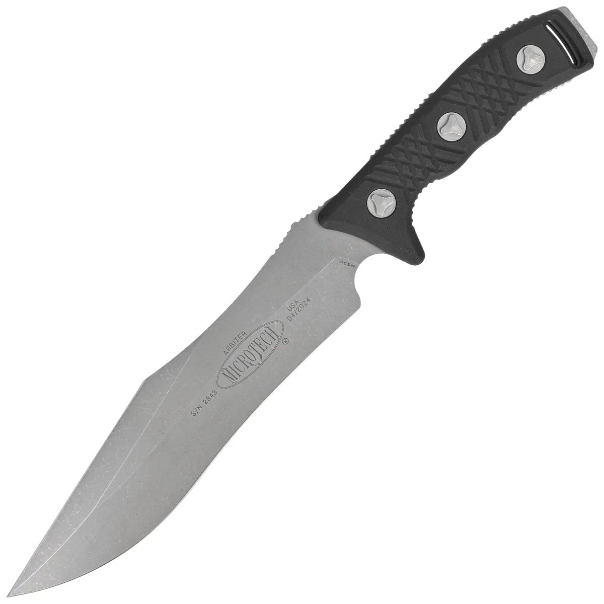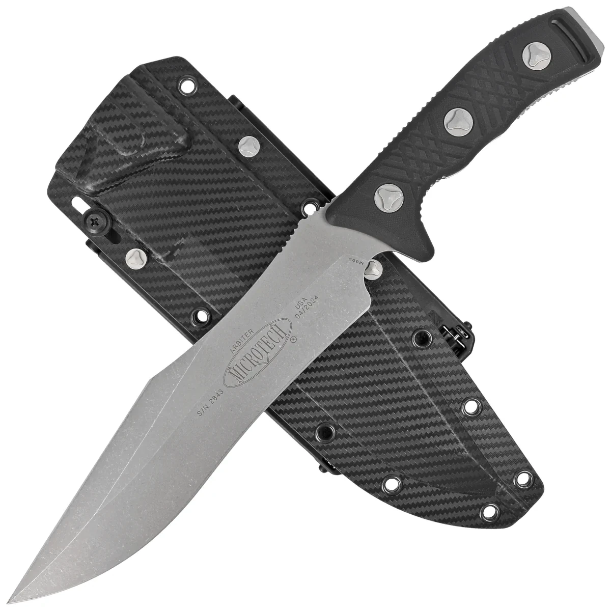 - Arbiter S/E Black G10, Apocalyptic, Microtech's largest fixed blade knife. Powerful Bowie-type blade in what is considered one of the best Böhler M390MK knife steels. Comfortable, ergonomically contoured G10 composite handle.