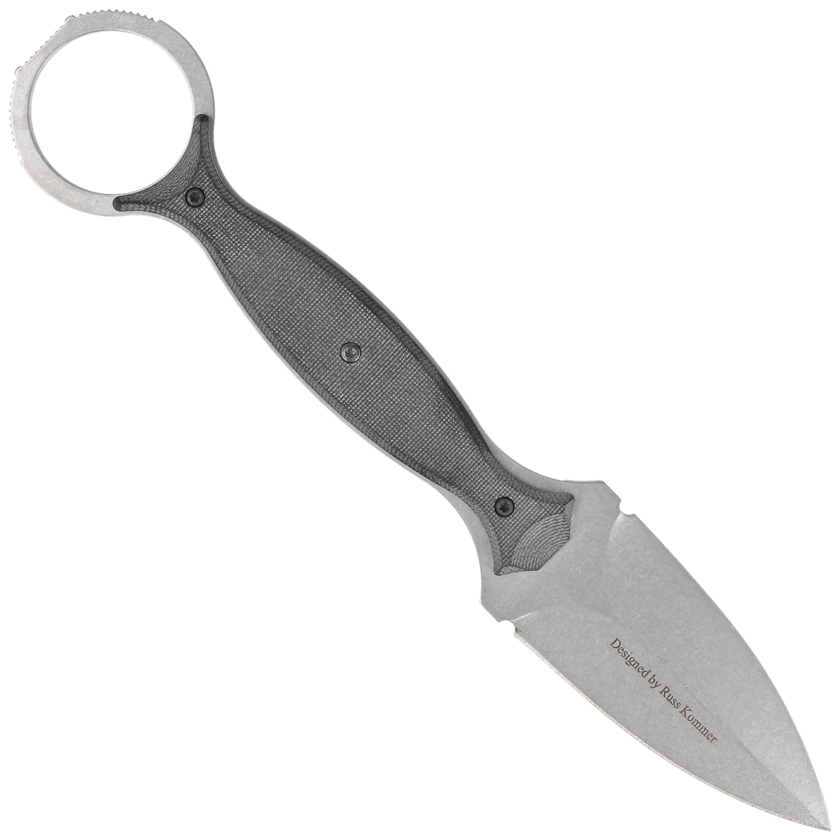 - 922 Neck Line Black G10, Black Stonewashed, fixed blade type knife. Designed by Russ Komer for Maserin Monolithic construction in Böhler N690 steel, kydex sheath equipped with Tek-Lok style clip for carrying in different positions. A hit!