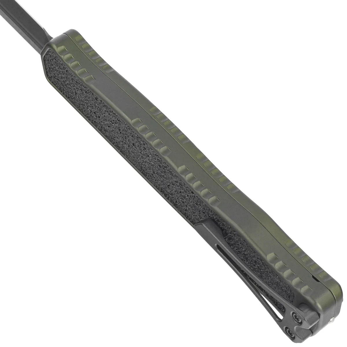 Cleric II D/E OD Green Aluminum, Black DLC, an OTF (Out The Front) automatic knife from Heretic Knives that catches the eye with its uniqueness. A unique knife, designed by Anthony Marfione Jr., owner of Heretic Knives, with a slim profile, super smooth opening and closing action. Aluminum Handle inlaid with a special sandpaper-textured inlay for added grip confidence. Activated by a textured thumb slide on the front of the handle. Cleric II is a knife that combines quality and uniqueness. Its refined details and precise workmanship make it not only a practical tool, but also a work of applied art. Whether you are a knife collector or looking for a reliable tool for everyday use, Cleric II is a knife that is sure to exceed your expectations and deserves a place in any collection. It's not just a knife - it's a unique experience that redefines what an OTF knife can be.