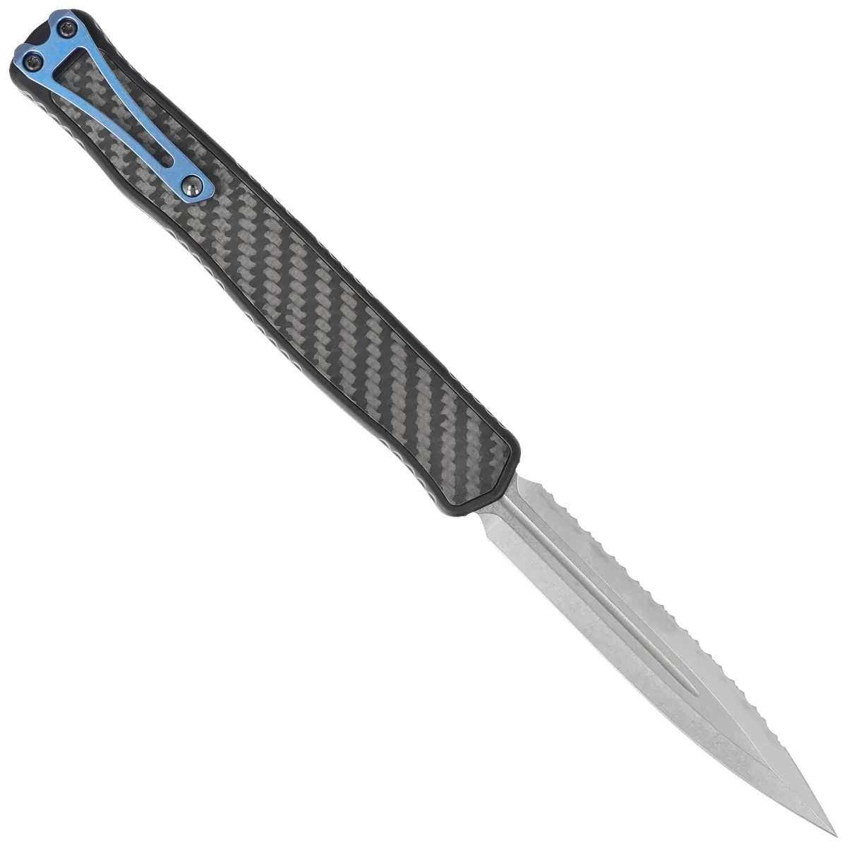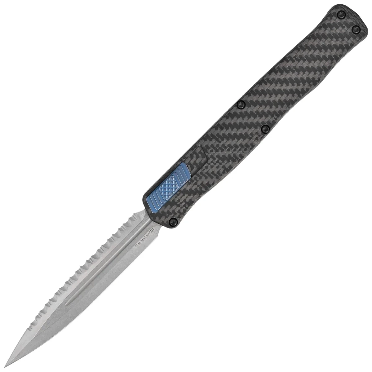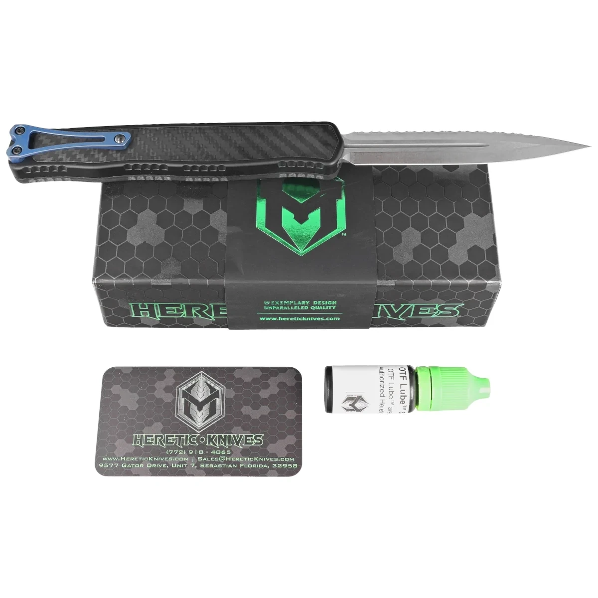 - Cleric II D/E Carbon Fiber/Black Aluminium, P/S Stonewashed. An OTF automatic knife that stands out among the rest. D/A working automatic with a slim profile with super smooth opening and closing action. Customized by Tony Marfione Jr, Heretic Knives