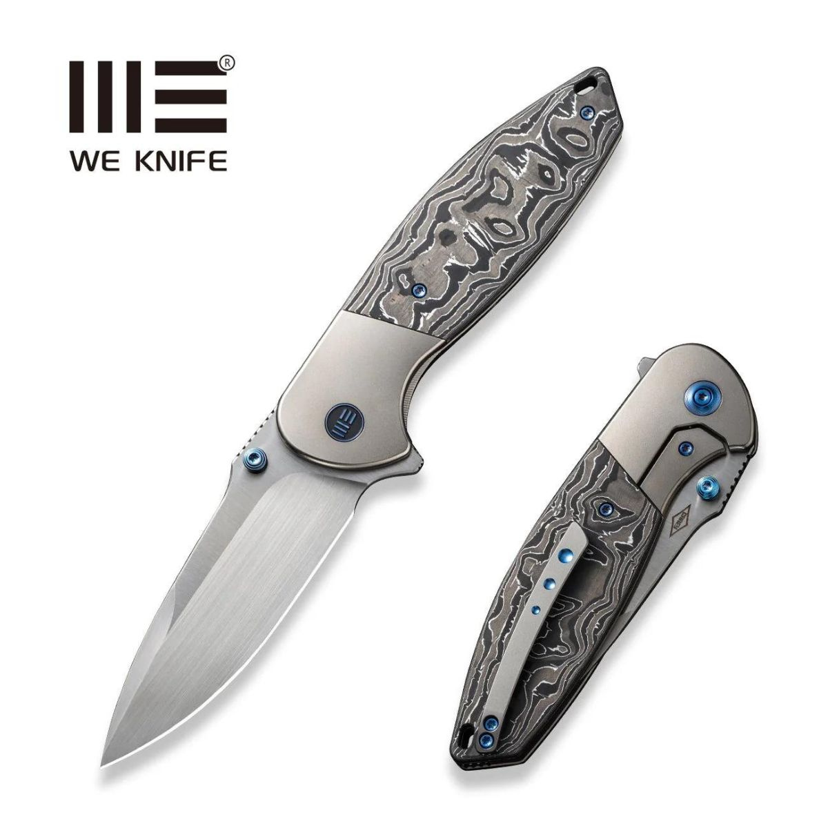 Handle - bolsters made of 6AL4V titanium, handle made of Aluminum Carbon Fiber, carbon fiber with aluminum threads. Chamfered edges of the covers eliminate sharp edges. The grips are screwed to an intricately machined titanium backspacer, giving assurance of many years of use. The pivot is decorated with a stylized WE Knife brand logo. A single-position (right) titanium deep-carry clip allows you to carry the knife discreetly in your pocket in the tip-up (blade tip up) position.