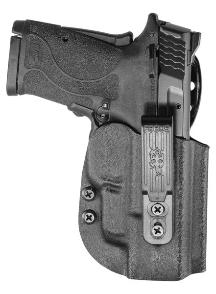 - EZCT tactical holster for external OWB or internal IWB carry, depending on user needs. For concealed carry IWB it is mounted on belt from inside of pants. Retention screw to customize the holster's grip strength. For the Smith & Wesson EZ9 Shield pistol.
