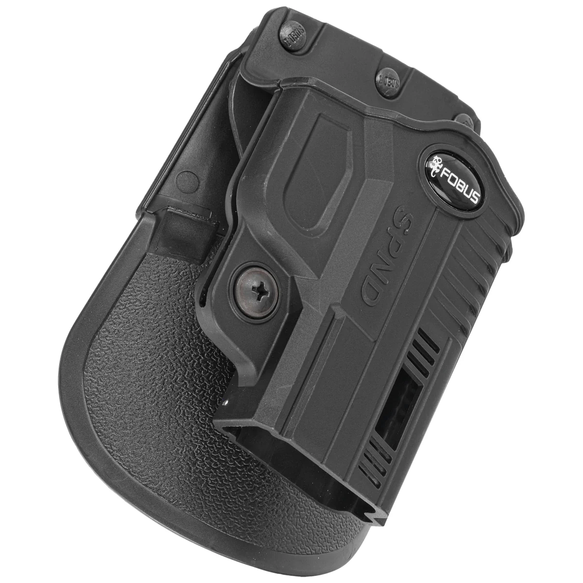 SPND RT (Rotating Paddle) - Outside the Waist Band (OWB) holster from the ND (New Design) series from Fobus. The ND series, was designed with an emphasis on functionality, lightweight construction and durability. Its low profile makes it easy to conceal the weapon, increasing carrying comfort. The holster protects well against damage and does not tend to move. Made entirely of 100% injection-molded polymer. Right-handed version.