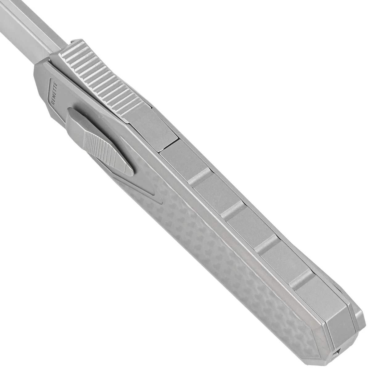 - Swordfish Titanium/Red Blue Carbon Fiber, Pearlescent. An innovative knife from the young Remette Knives manufactory. OTF with an extendable blade made of Böhler M390 steel by gravity. Handle made of titanium with an smart blade release system.