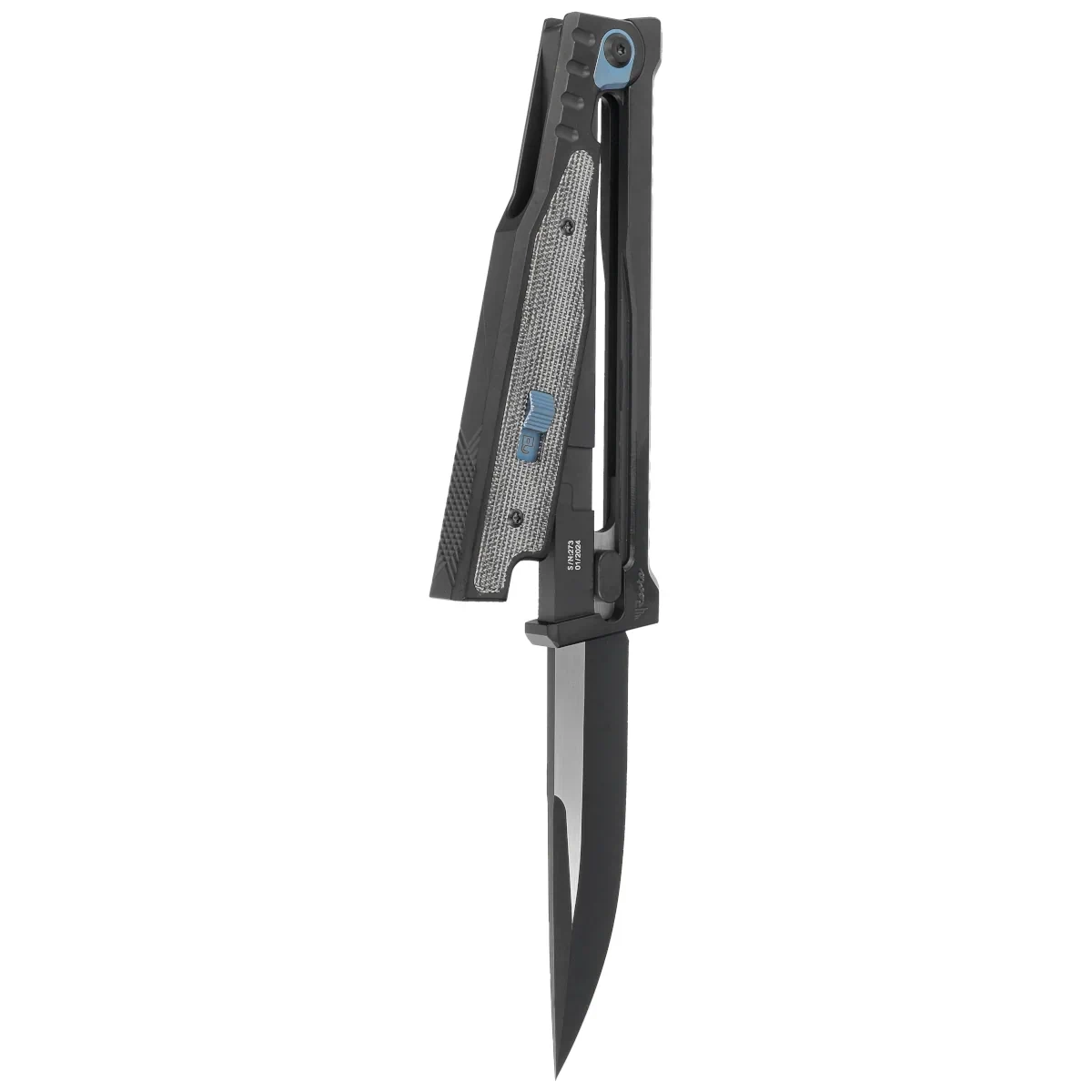 EXO 2.0 OTF Gravity Drop Point Black PVD Titanium / Black Micarta, Black PVD open intuitive, the largest folding knife in the EXO series produced by the legendary Reate Knives manufactory, a display of engineering in design. Gravity OTF (Out The Front) Blade extends from the front due to the force of gravity. Modeled on the design of the Luftwaffe gravity air knife, commonly known as the knife of German paratroopers. Intuitive blade ejection / retraction with one hand (under the influence of gravity) and the best materials, perfectly combined with the unmatched quality of the Reate brand !