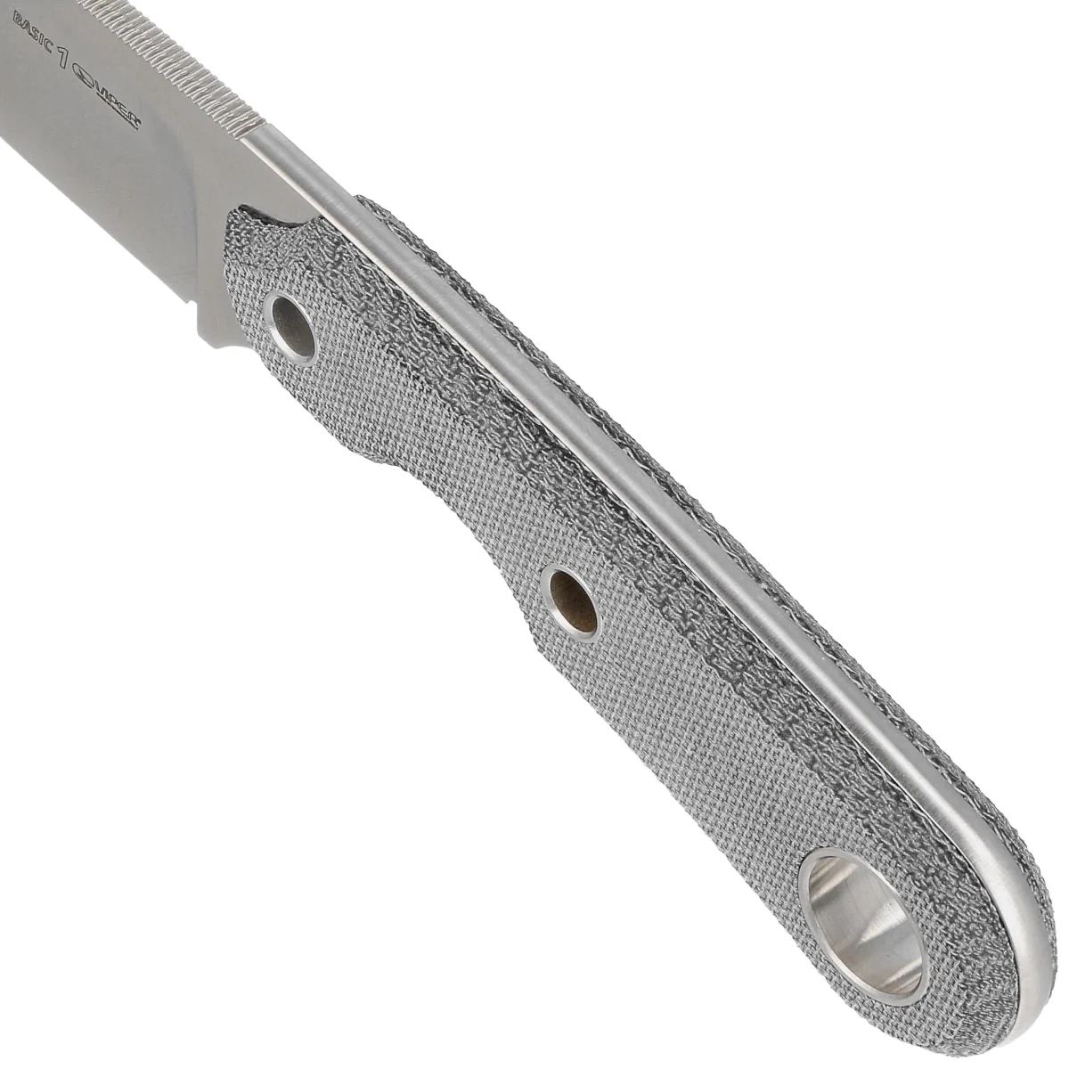 Basic1 Black Canvas Micarta, Satin, designed by Tommaso Rumici, is a true masterpiece of craftsmanship. Made from what is considered the best steel for knives - MagnaCut, known for its strength and long blade retention. The comfortable handle, made of Canvas Micarta composite, provides a secure grip even in the toughest conditions. This is a knife that not only looks good, but also meets the challenges that await it. Its versatility makes it an ideal tool for anyone who values reliability and tool functionality. Whether you are an outdoor enthusiast or simply need a sturdy knife for everyday use, this model is sure to meet your expectations.