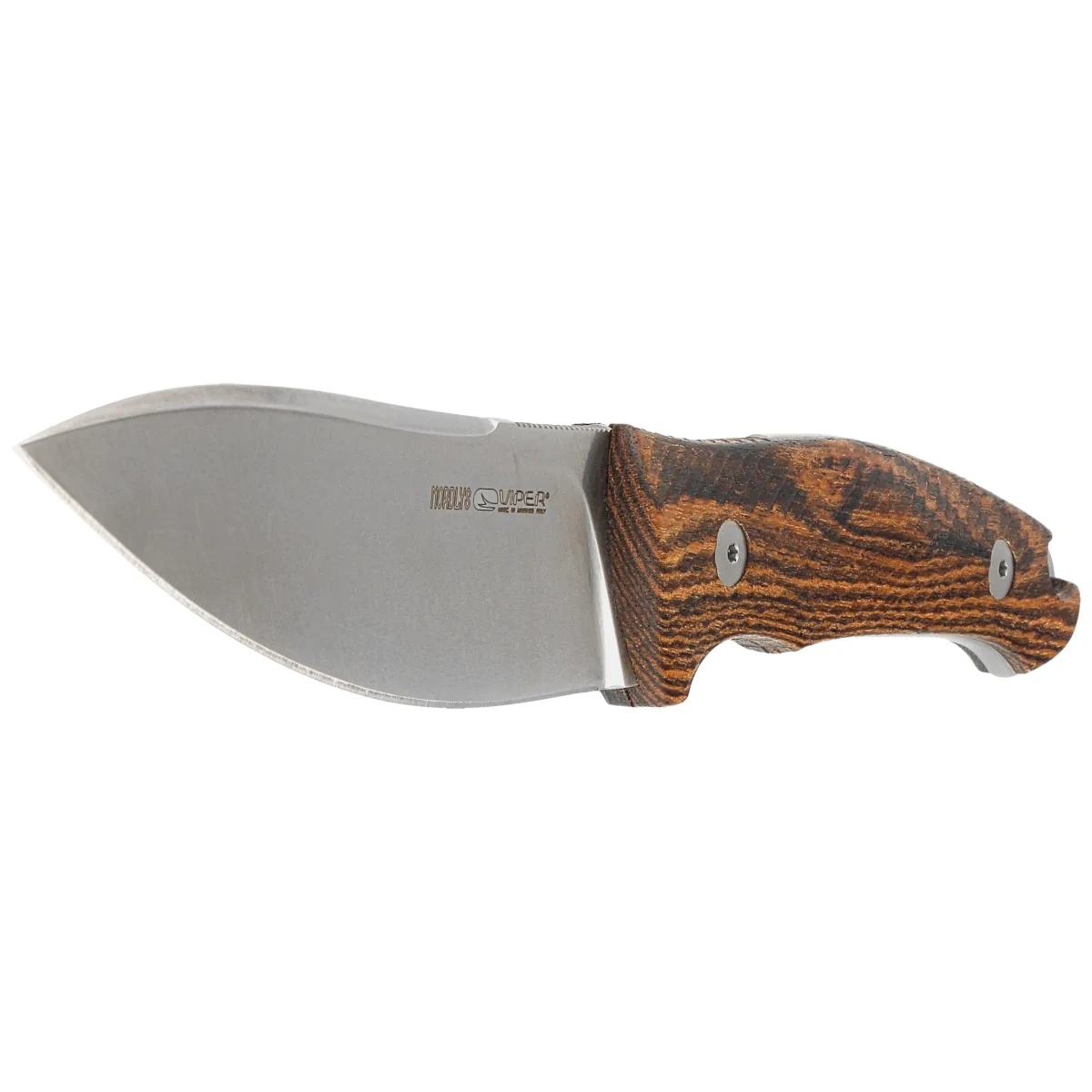 • Nordlys Bocote Wood, Satin, designed by Jens Ansø. A solid piece of proven N690 stainless steel, a multifunctional knife from the Italian brand Viper. Comfortable Bocote wood handle, Sheath made of high-quality leather with belt attachment.