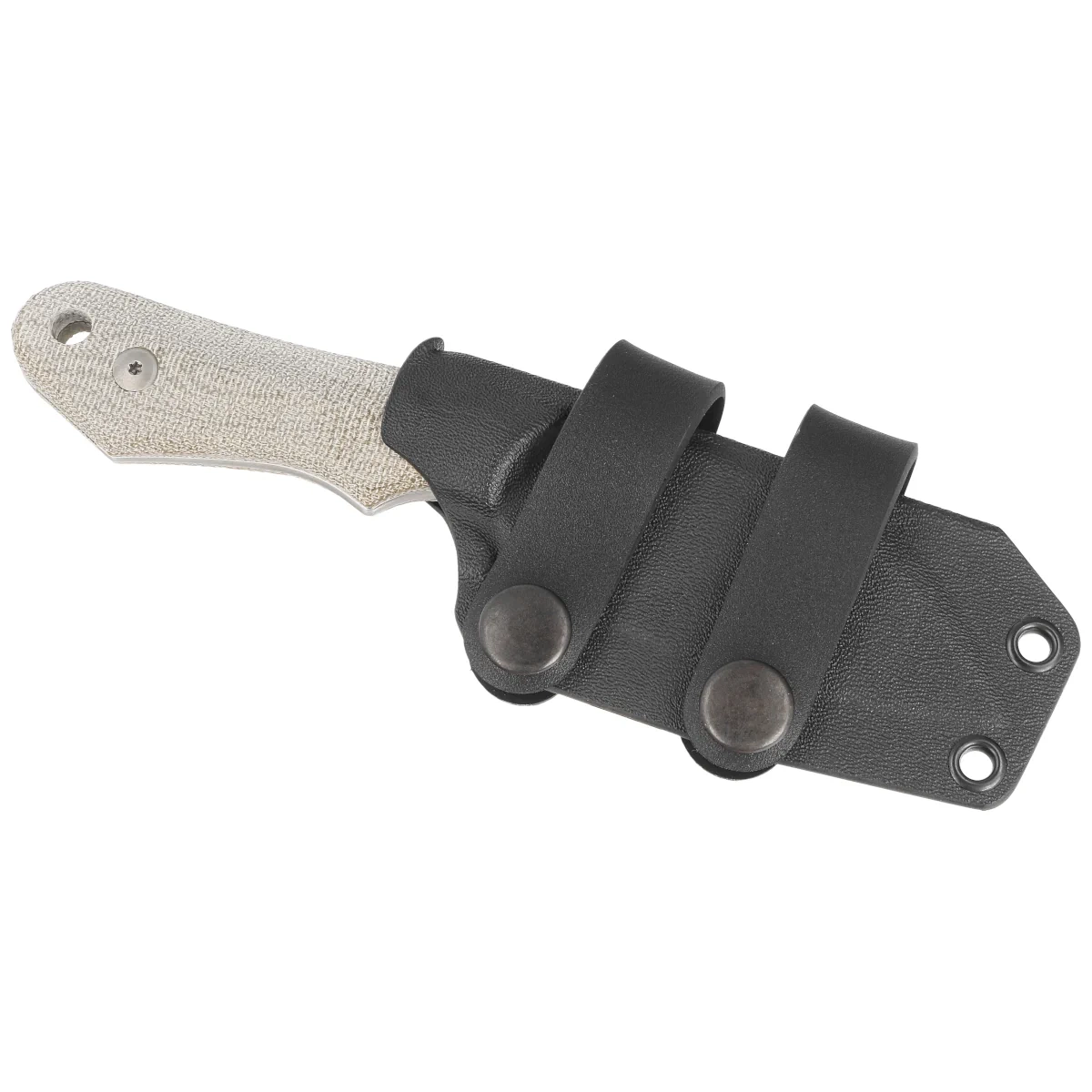Handle - ergonomically profiled with finger notches. 3D machined grips made of Canvas Micarta composite (pressure-pressed canvas with synthetic resin) attached directly to the blank. This is the simplest and most secure construction that ensures the practical indestructibility of the knife. Micarta has the advantage of being insensitive to weather conditions, resistant to chemicals and mechanical damage. On the back of the Handle lanyard hole, a hole for a belaying or decorative rope.