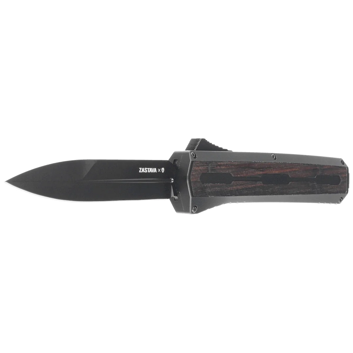 - A7 Zastava S/P Black Aluminum/Tactical Black Wood, Black tactical OTF knife, created in collaboration with Zastava Arms, draws inspiration from iconic Zastava M70 rifle. Aluminum & wood handle. Blade made of S35VN steel, coated titanium-based black finish