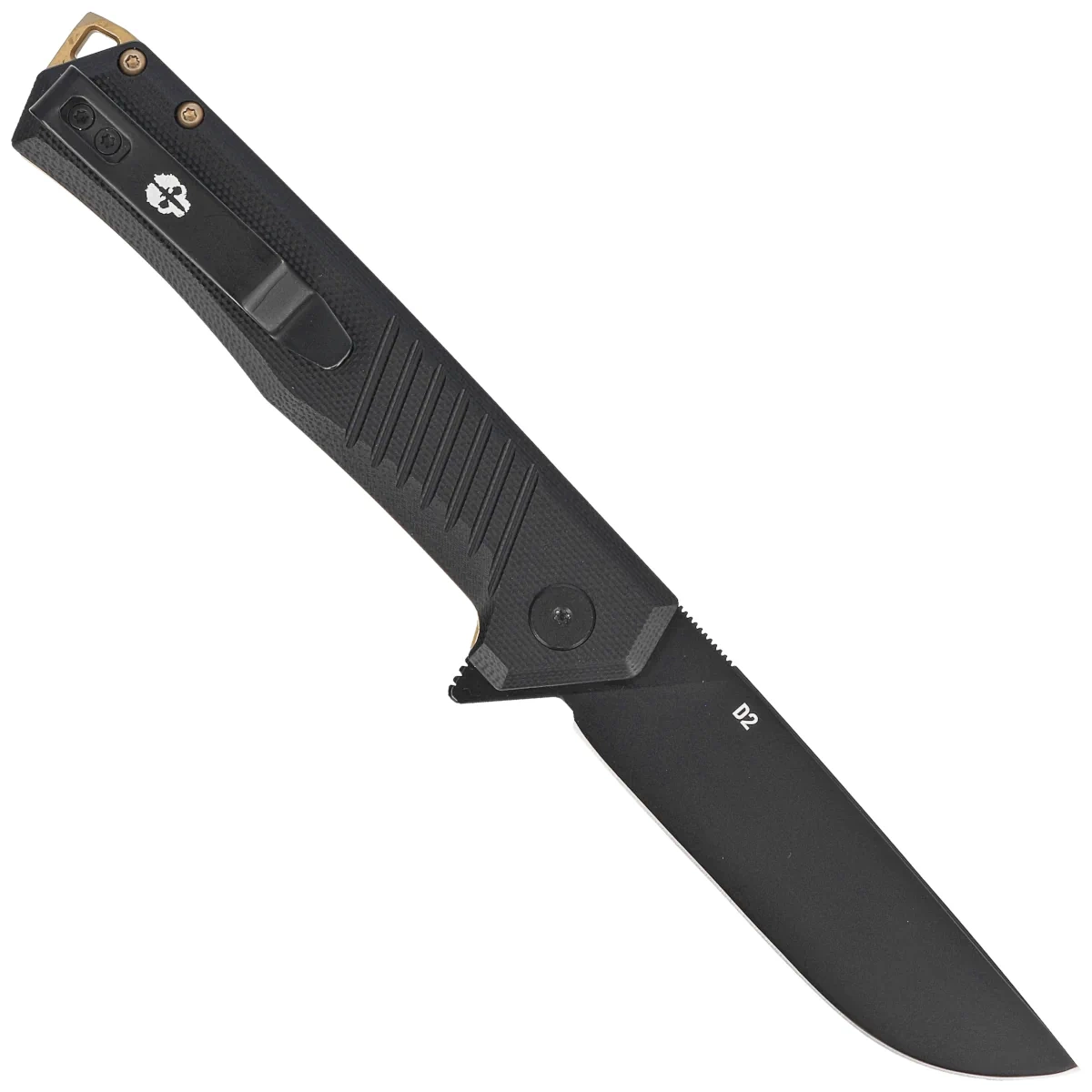 • F1 Alpha Black G10, Bronze HW, Black universal folding knife by Tekto for those who demand reliability. The utilitarian blade is made from D2 tool steel, with durable G10 composite scales. Ideal for the battlefield, forest, camping, or as an EDC.