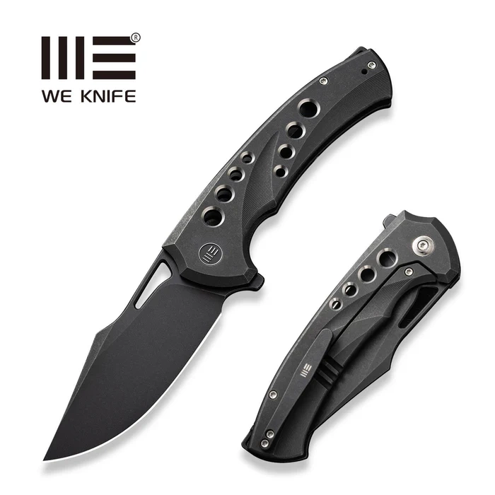 - Swiftfin Black Satin Titanium, Black Stonewashed, a large EDC folding knife from the WE Knife manufactory. Blade made of CPM 20CV steel, ergonomic titanium milled handle. Excellent whole-hand grip and two ways of opening.