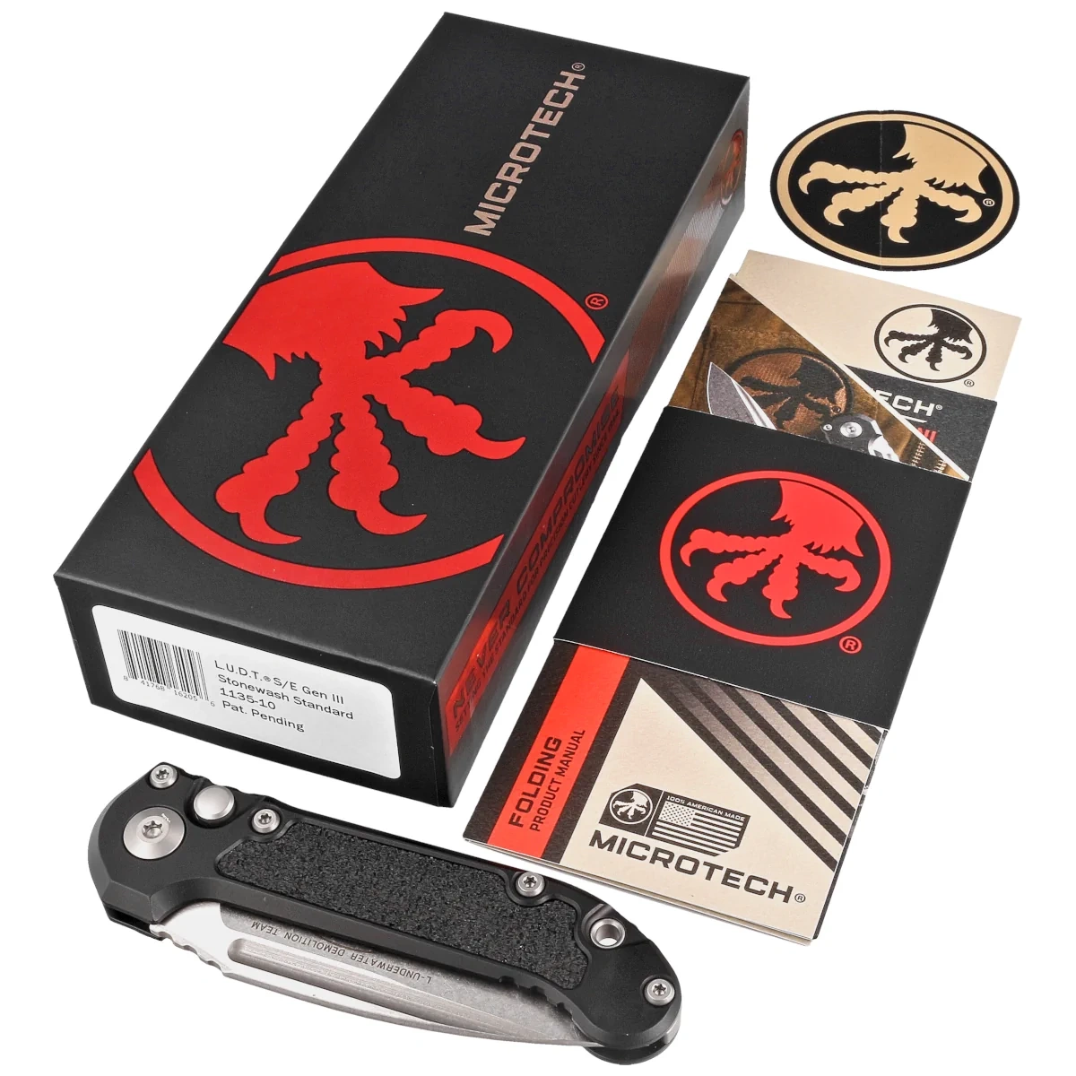Microtech LUDT Gen III S/E Automatic Knife Black Aluminum, Stonewashed M390MK by Tony Marfione (1135-10)