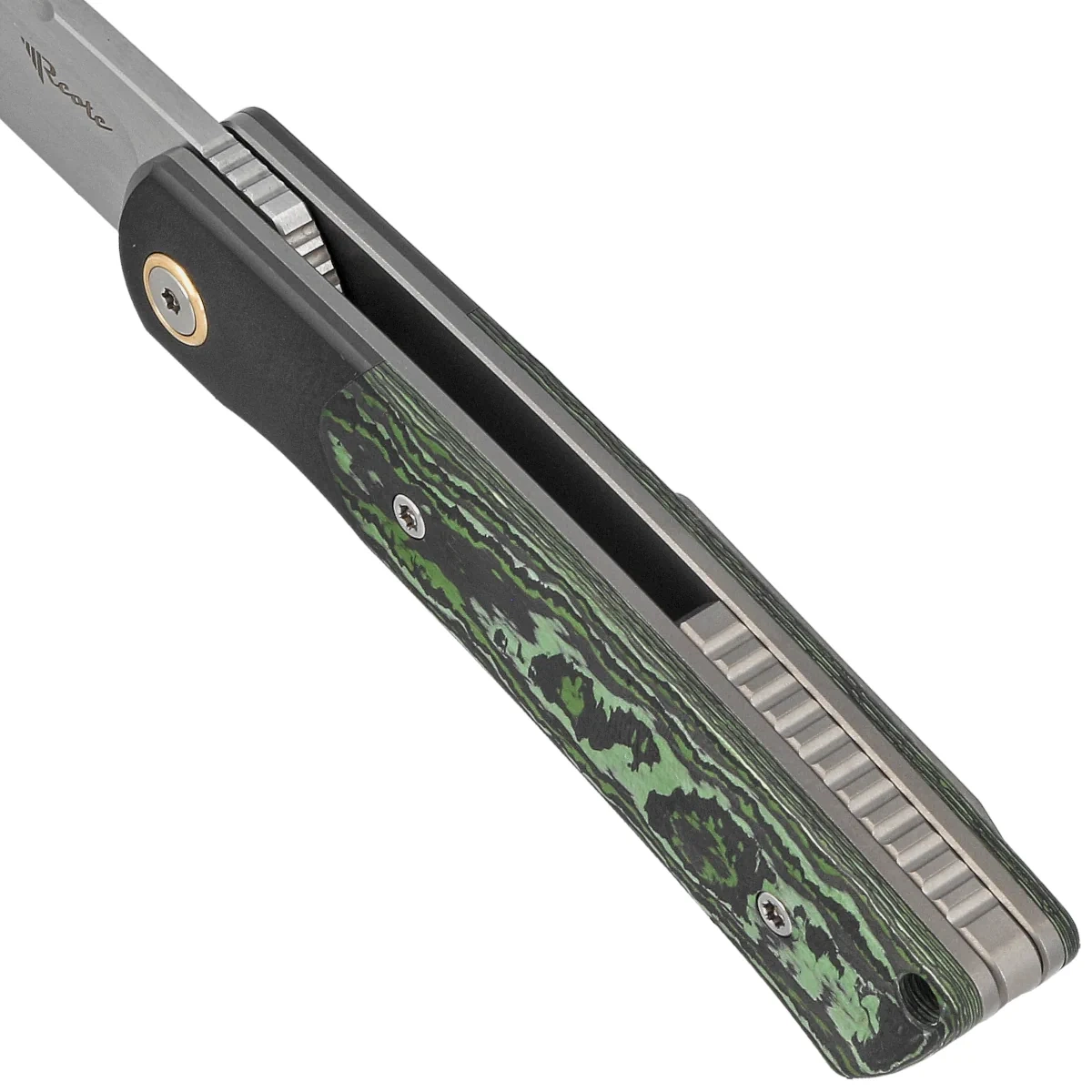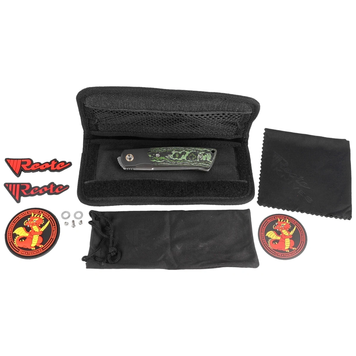 • Tribute Titanium/Zirconium/Jungle Wear Fat Carbon, Hand Satin compact EDC folding knife from the legendary Reate Knives manufactory. Superior materials, Böhler M390 steel blade, zirconium and Fat Carbon handle on a titanium frame!