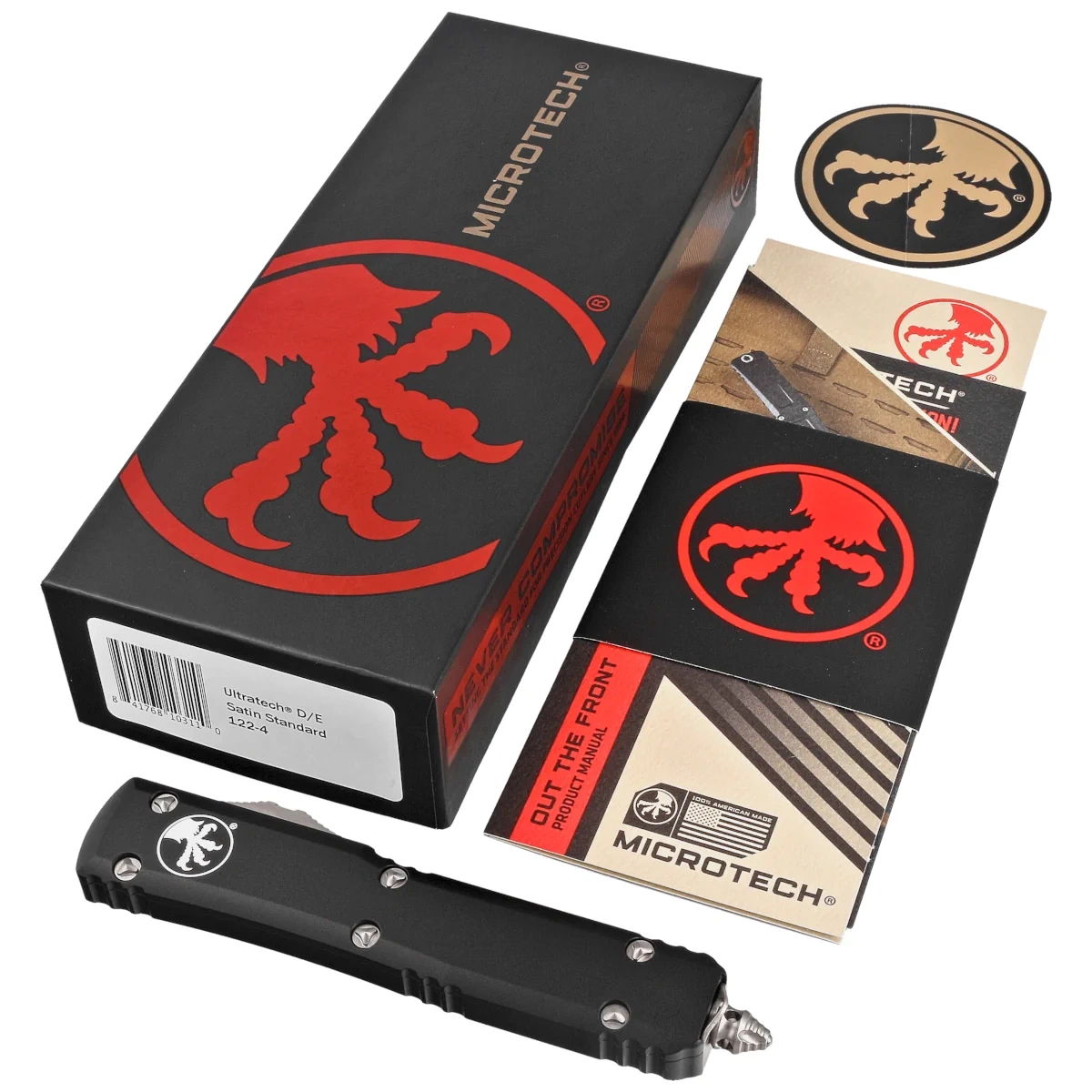 • Ultratech D/E Black Aluminum, Satin a full-sized OTF automatic knife from Ultratech series. Operating in D/A mode, it features a lightning-fast blade deployment mechanism. Handle is made of black anodized aluminum. Designed by Tony Marfione from Microtech