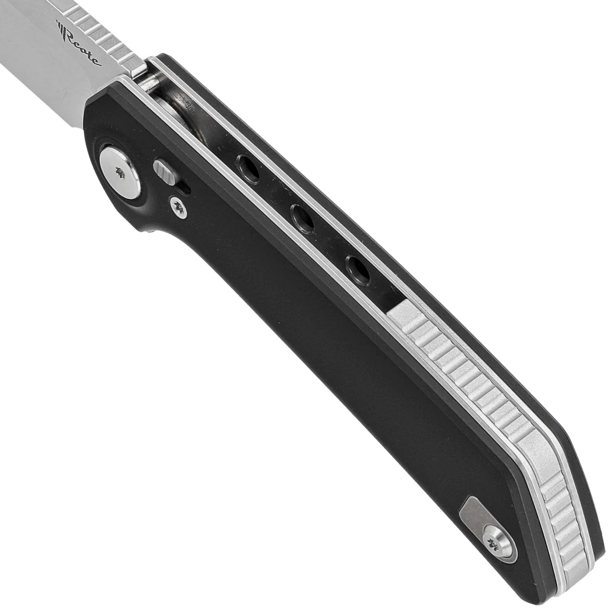 - Reate PL-XF Black Aluminium, Stonewashed / Satin, a larger version of the remarkable folding knife with an intuitive lock built into the pivot. Comfortable aluminum Handle, usable blade made of excellent Nitro-V steel. An excellent knife for everyday use!