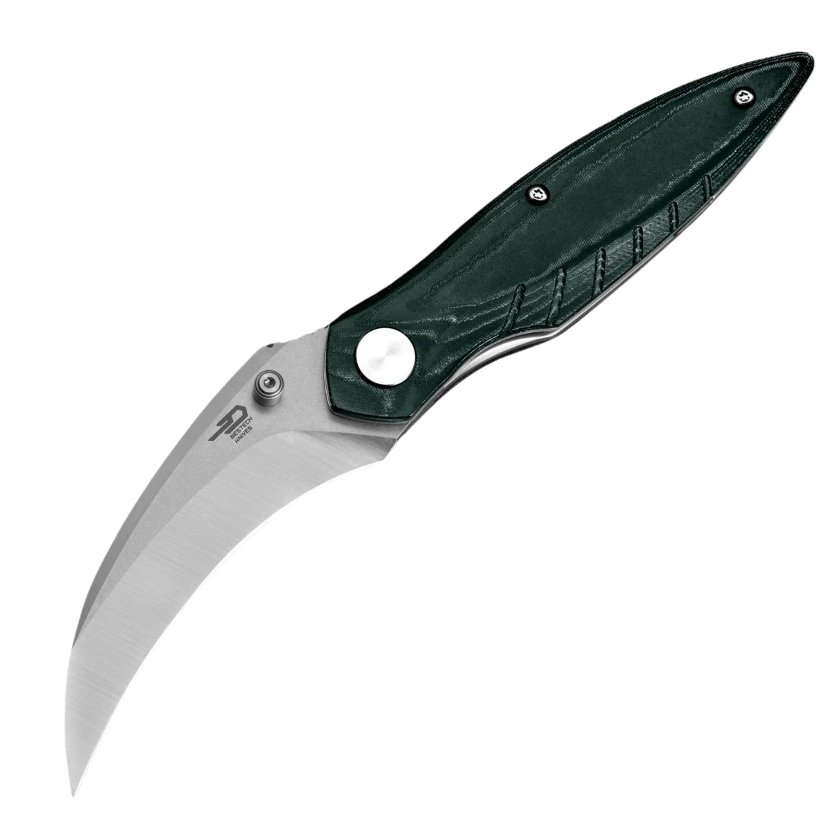 • Mantidae Green Micarta, Satin / Stonewashed aggressive Lucas design for Bestech brand. Easy-to-carry elegant EDC knife with 14C28N steel blade suitable for heavy use. Best materials, best quality!